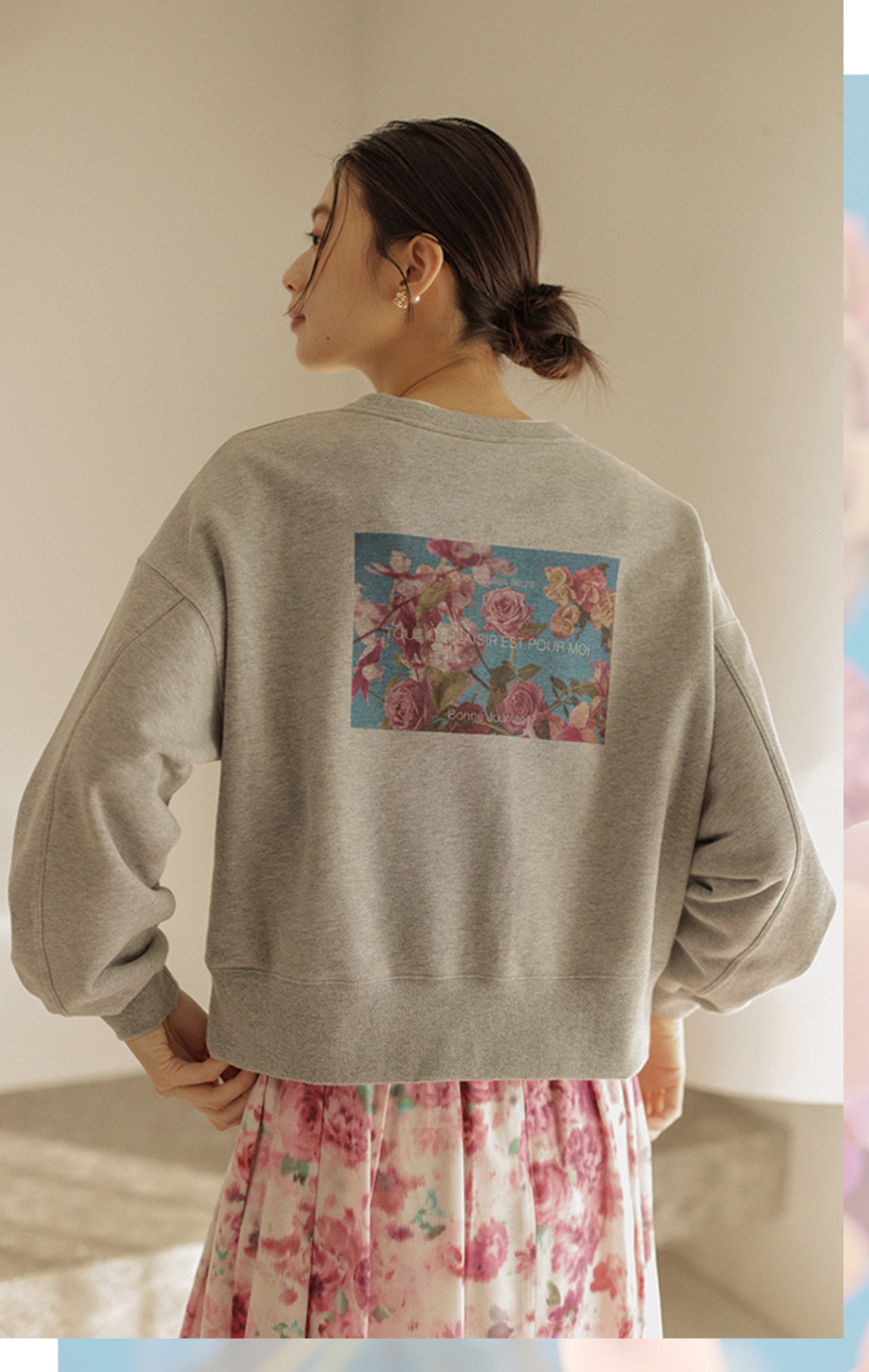 春の気分高まる大人のスウェットプルオーバー。フォトグラファーの須江隆治氏が撮った瑞々しくどこか不思議な作品をプリント。今回の企画の為に撮り下ろしていただきました。