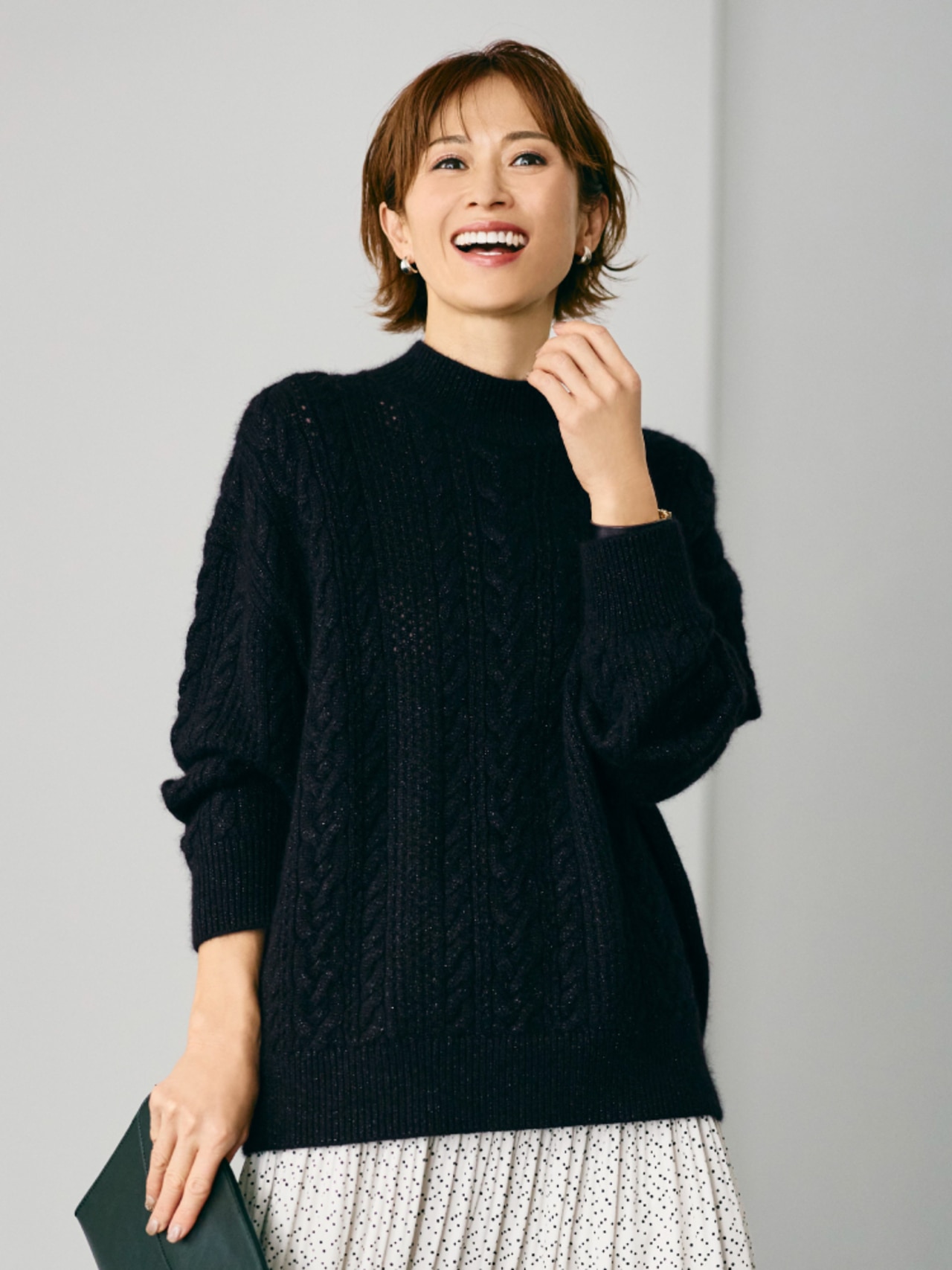 一枚で華やぐ、煌めきケーブルニット