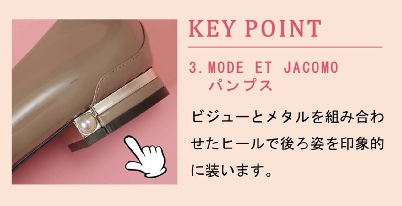 3.アクセントヒールスクエアパンプス