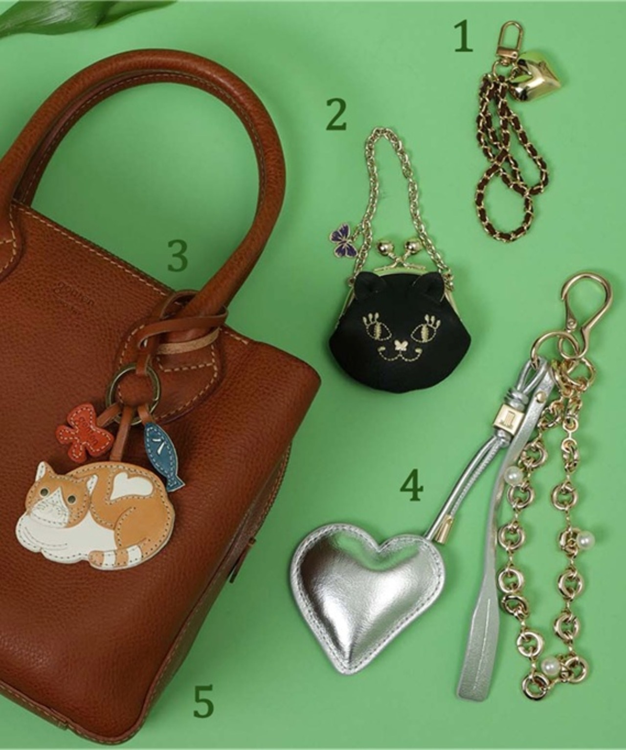1.スウェードチェーンハートバッグチャーム ブラウン ゴールド