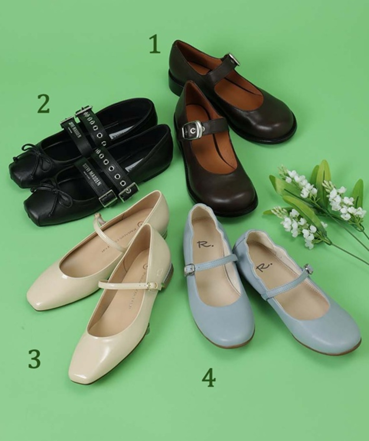 2.CEARA バレエダブルストラップフラットシューズ