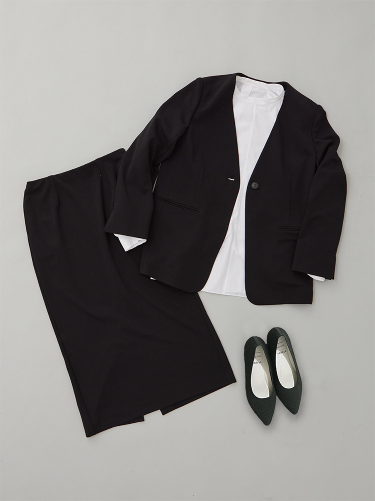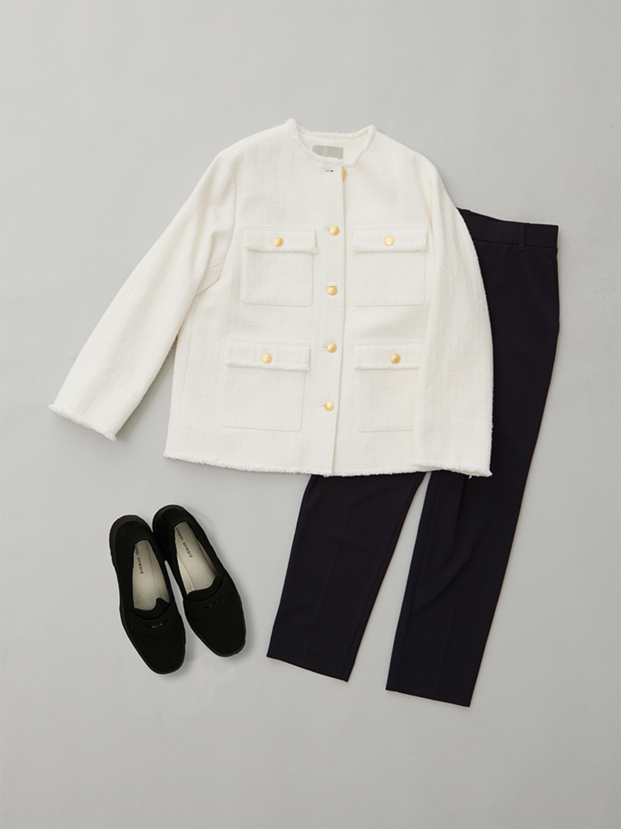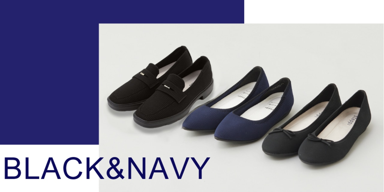 フォーマル、正統派なセレモニースタイルには「ネイビー」や「ブラック」のニットシューズ・パンプスが安心。steppiならつま先のデザインも、ポインテッド型、ラウンド型、スクエア型、ローファーと種類も豊富。いずれも大人の上品さのある雰囲気にまとまります。