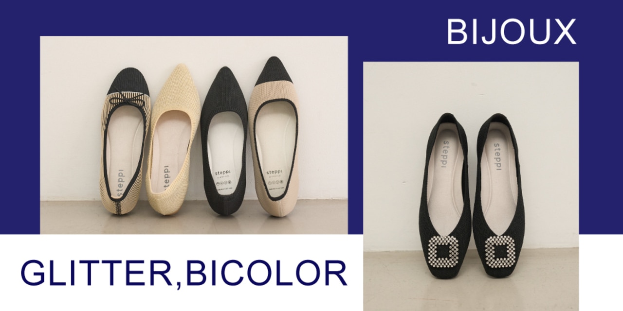 春の入学式や謝恩会などのセレモニーシーンには「ビジュー」や「ラメ」で華やかさを添えて。steppiのニットシューズなら、セレモニー以外の普段のスタイリングにも合わせやすく、気軽に履いていただけます。