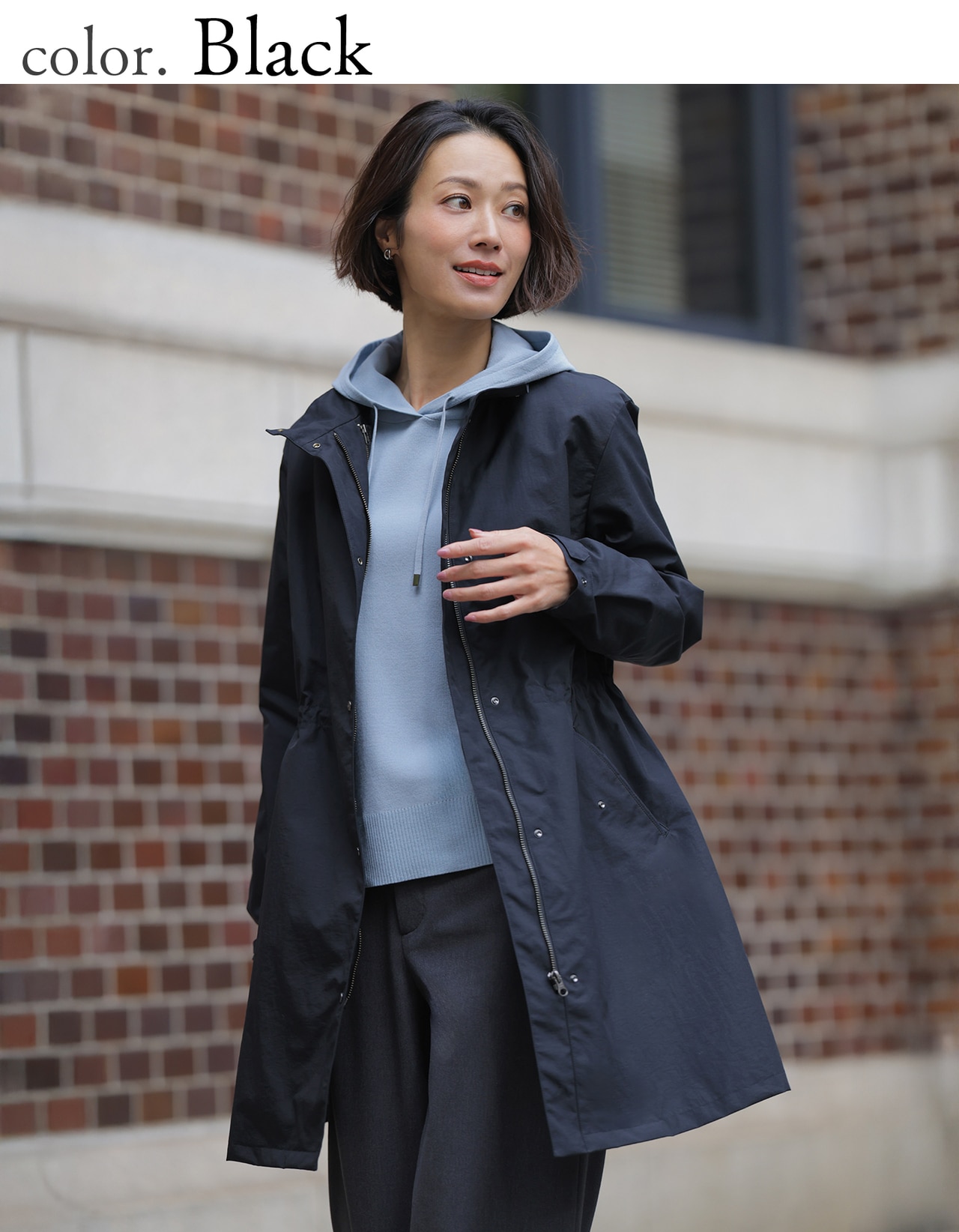 【2way】スパンライクナイロンタッサー フーデッド コート