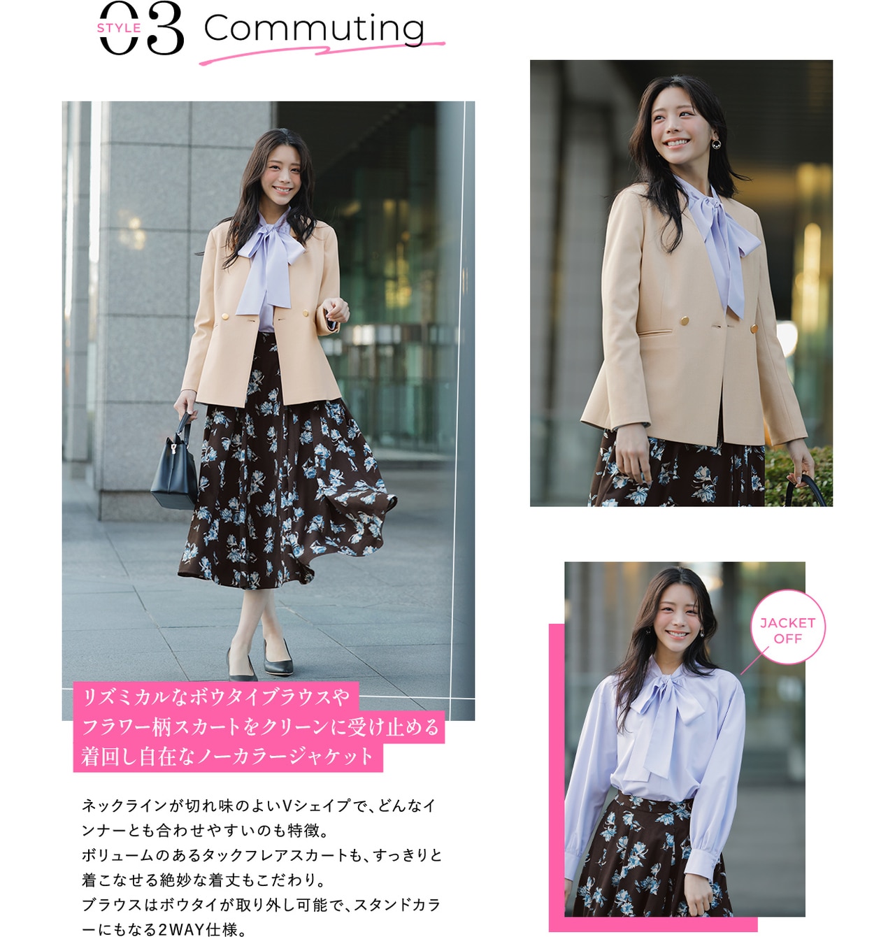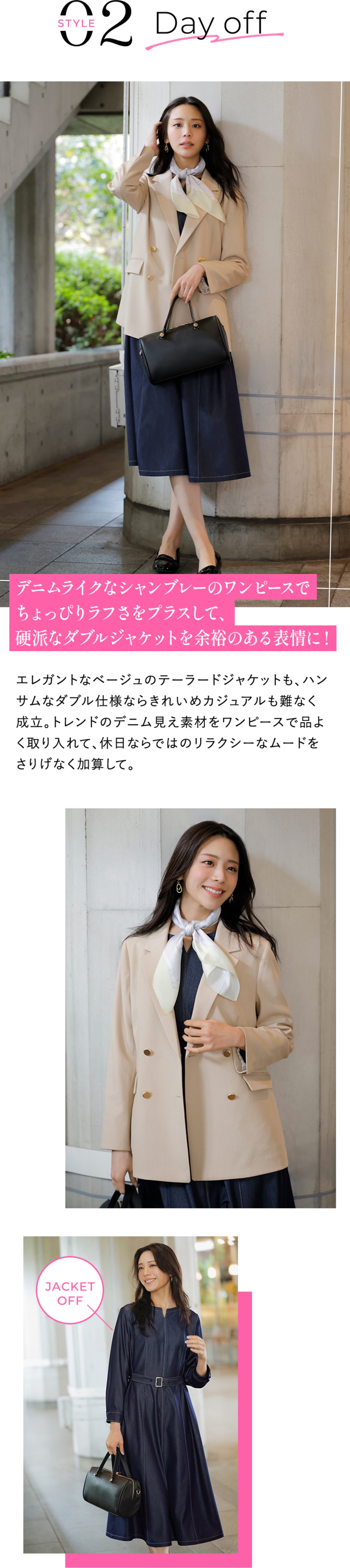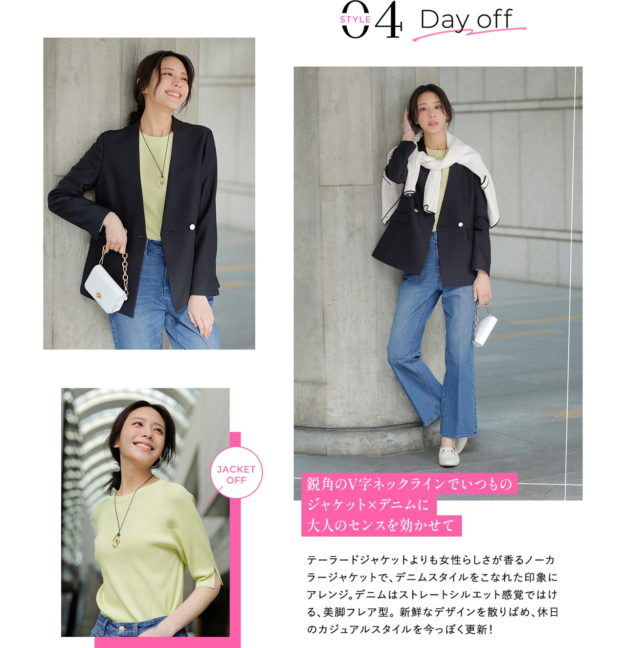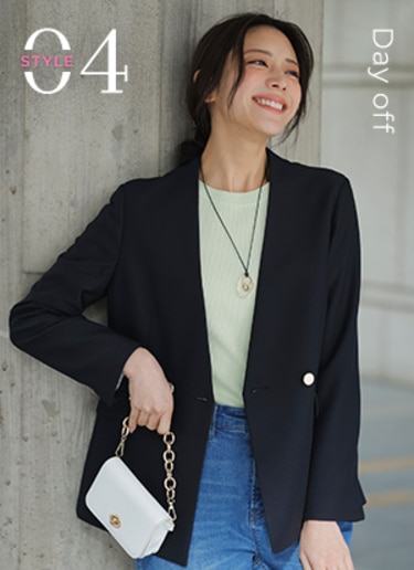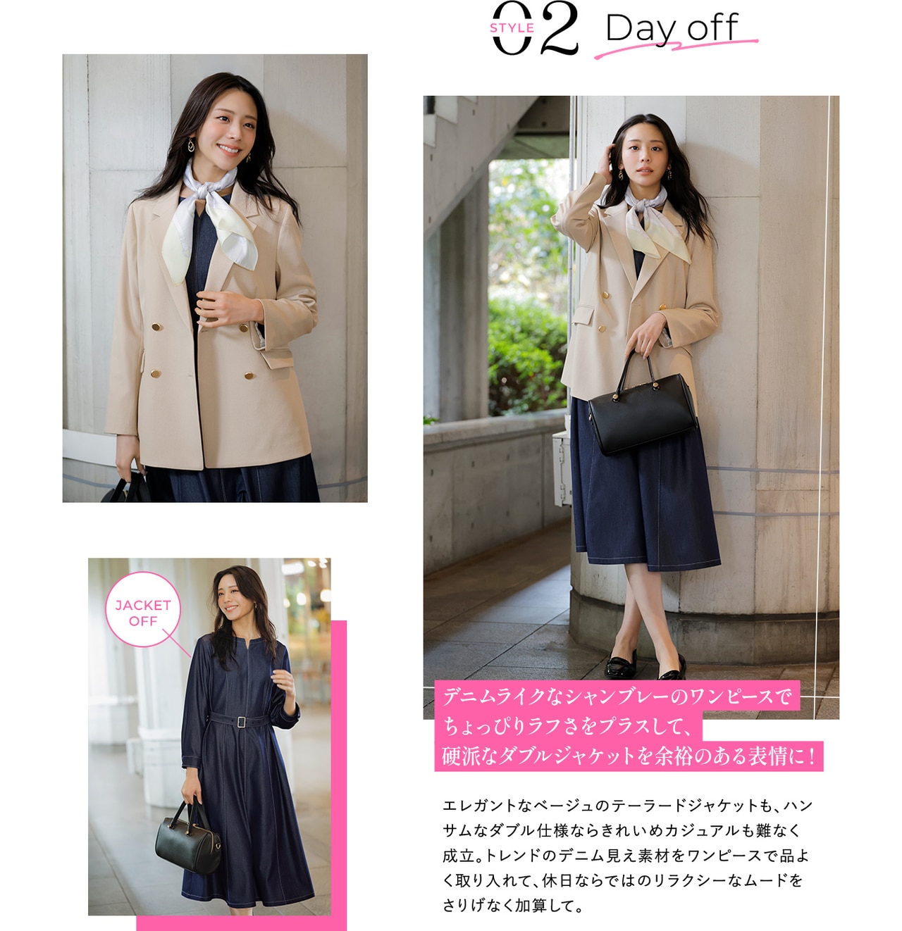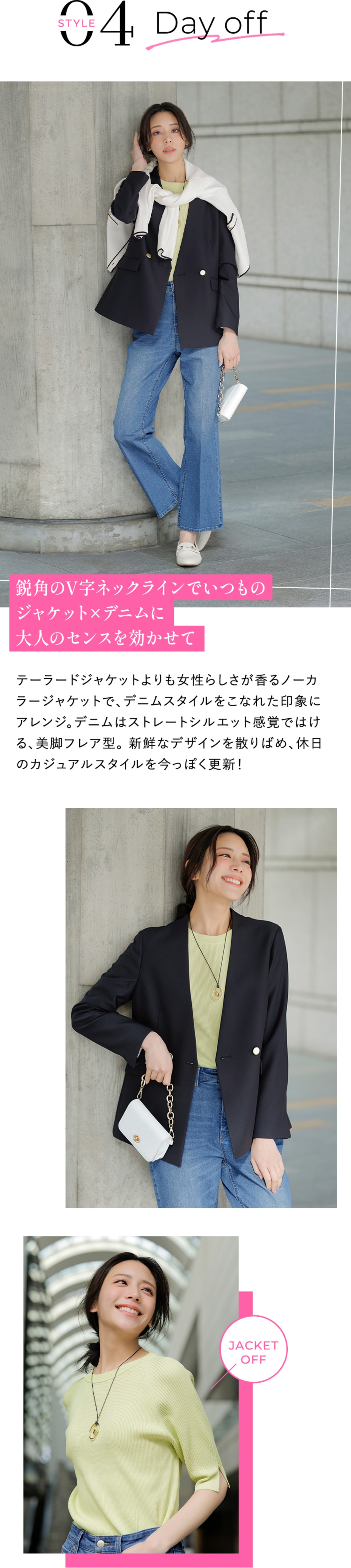 春の軽アウター感覚でまとえる程よくゆとりのあるフォルムやほんのりマニッシュなダブルボタン使いで更新して、通勤はもちろん休日のカジュアルスタイルを切れ味よく着こなしたい。
