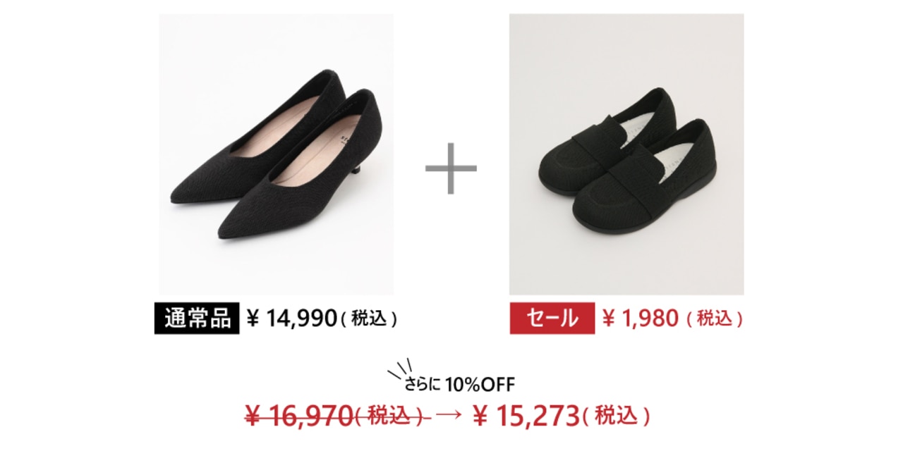 人気のローファーとパンプスも2点以上で、お得なセール価格からさらにお得に!
