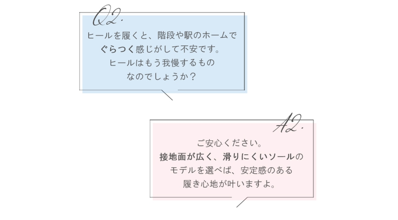 美脚と歩きやすさを両立した5cmヒールは、安定感のある太さに仕上げました。
