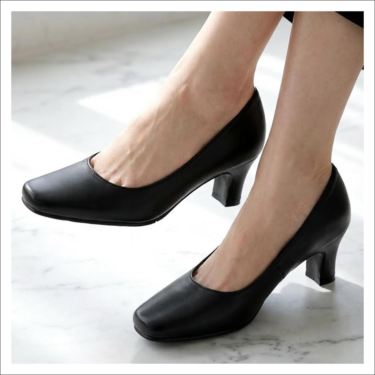 【5cmヒール】日本製 スクエアトゥパンプス