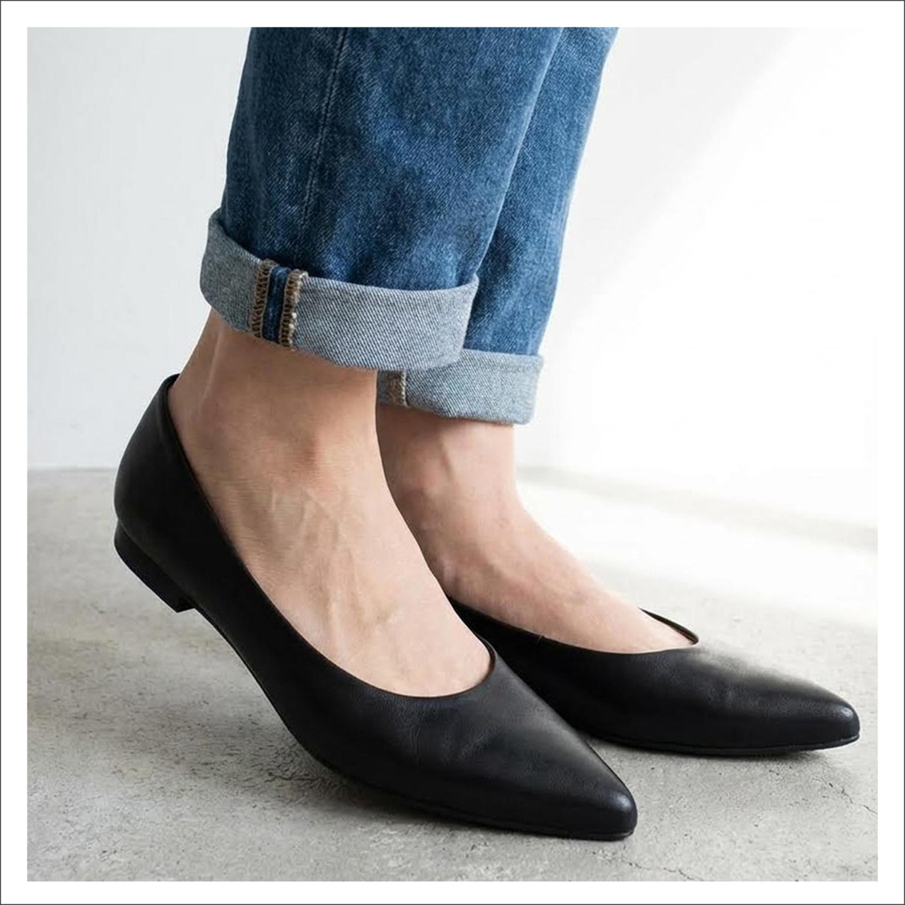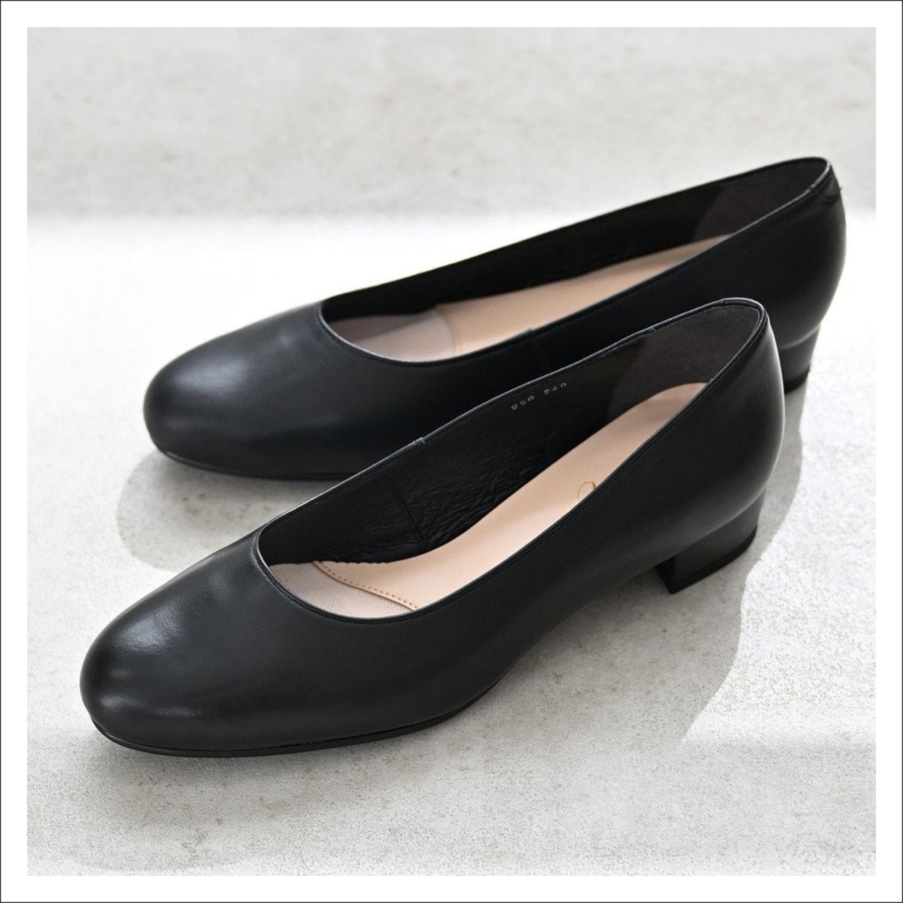 本革美脚ローヒールパンプス