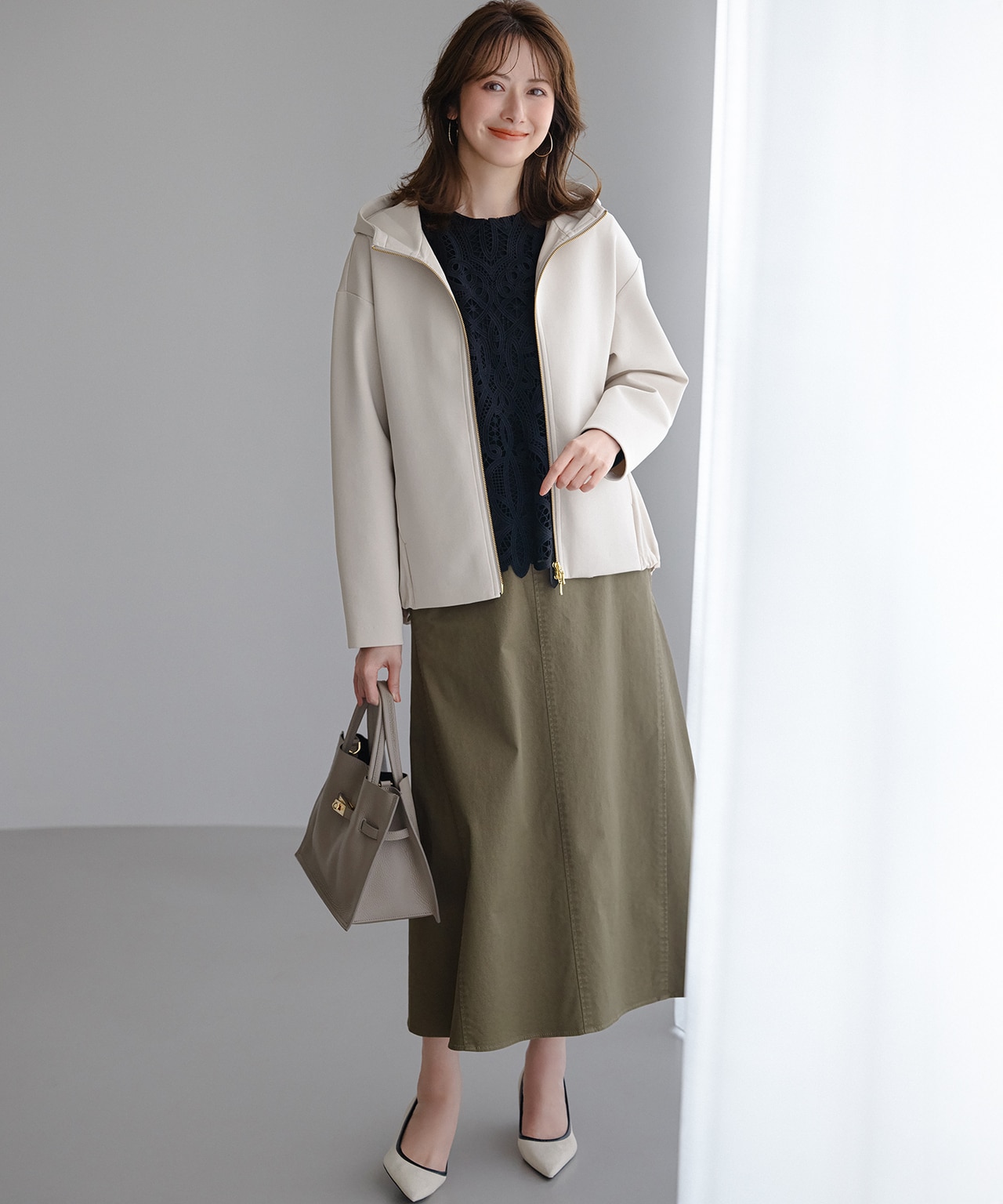 トラッドな印象を与えるチノをセットアップで取り入れれば、ぐっと端正なムードに。立体的なシルエットが大人の余裕を引き出し、ラフさの中にも品を感じさせる。シャツシャツ¥20,900(税込)Lサイズ/Sサイズスカートスカート¥20,900(税込)Lサイズ/Sサイズ