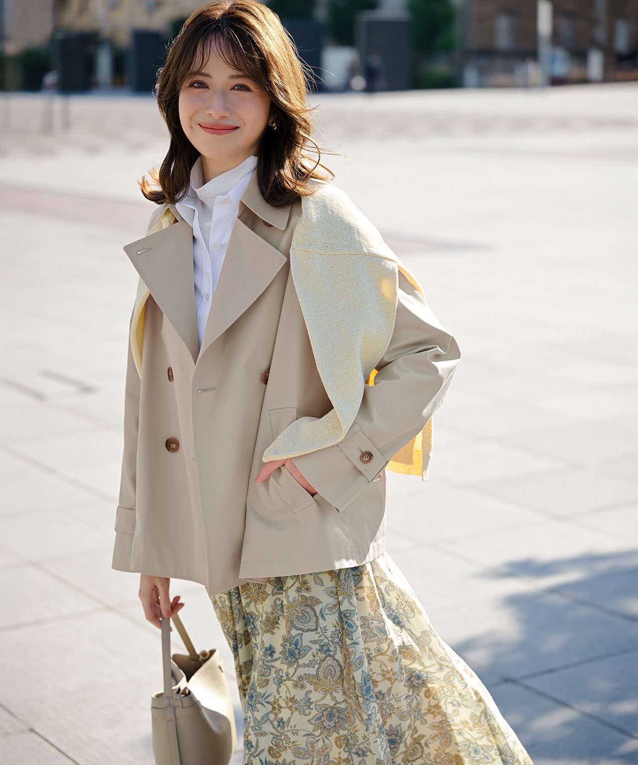 ベーシックなトレンチコートも、短丈を選べば軽やかな印象に。淡いパステルイエローで春めくスタイリングが完成。コートコート¥36,960(税込)Lサイズ/Sサイズ▼スタイリングアイテム