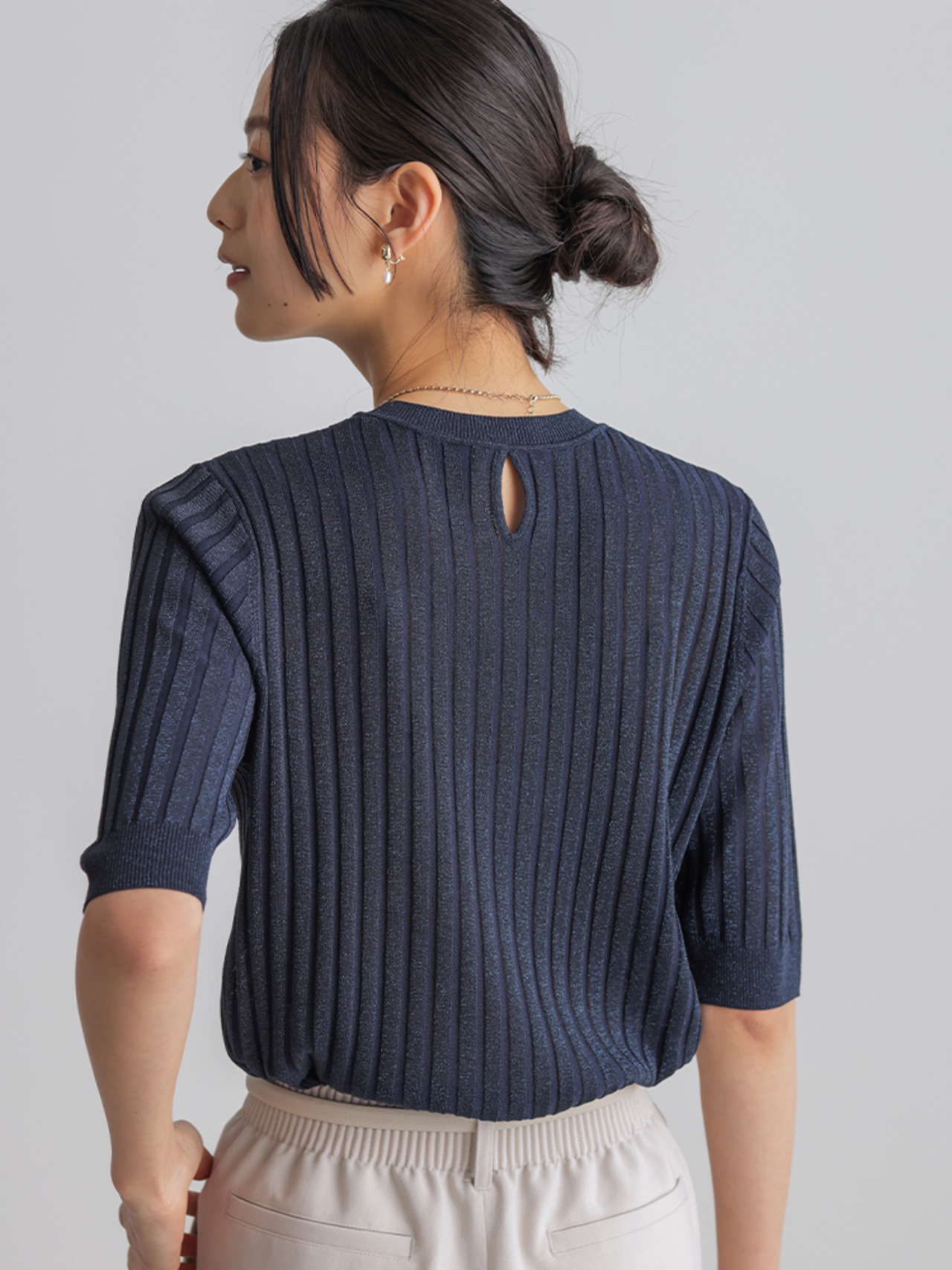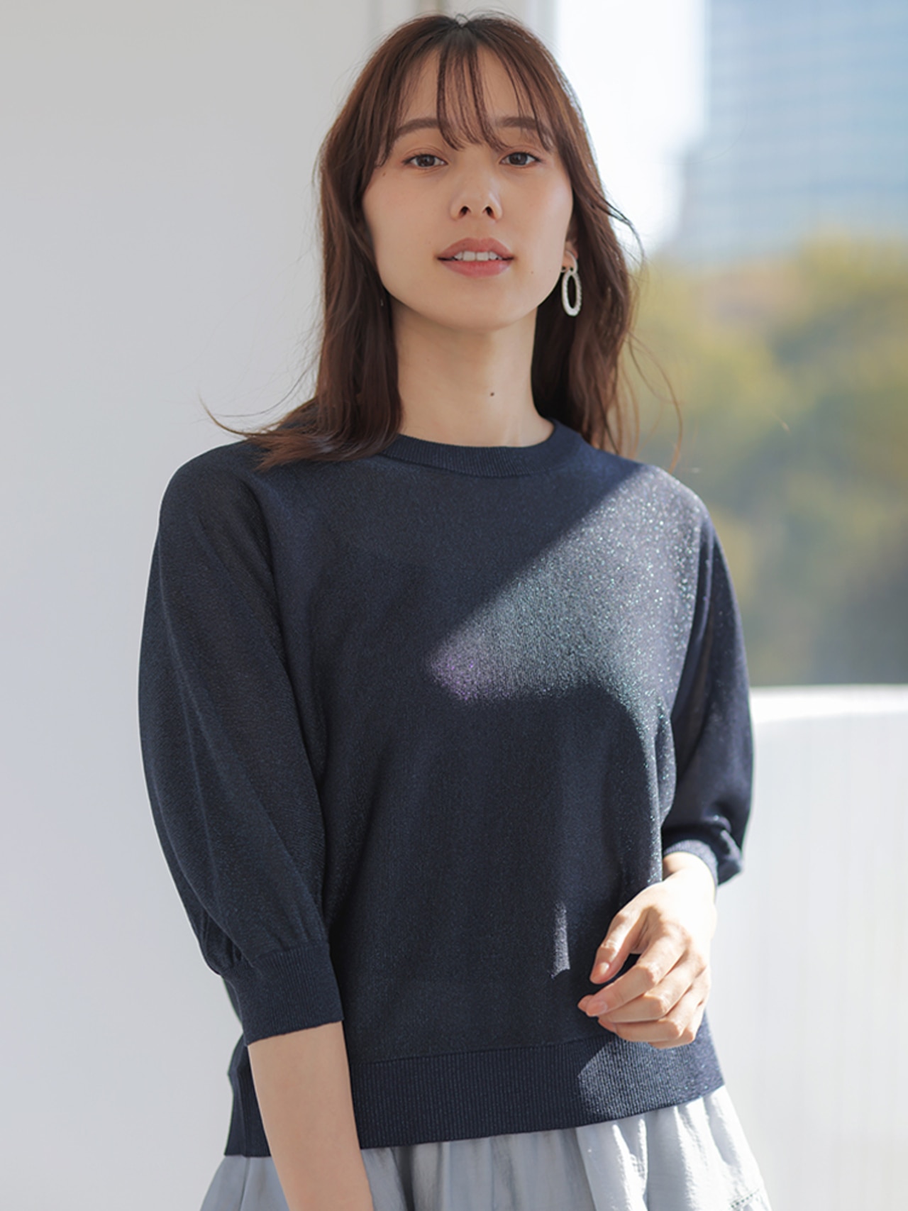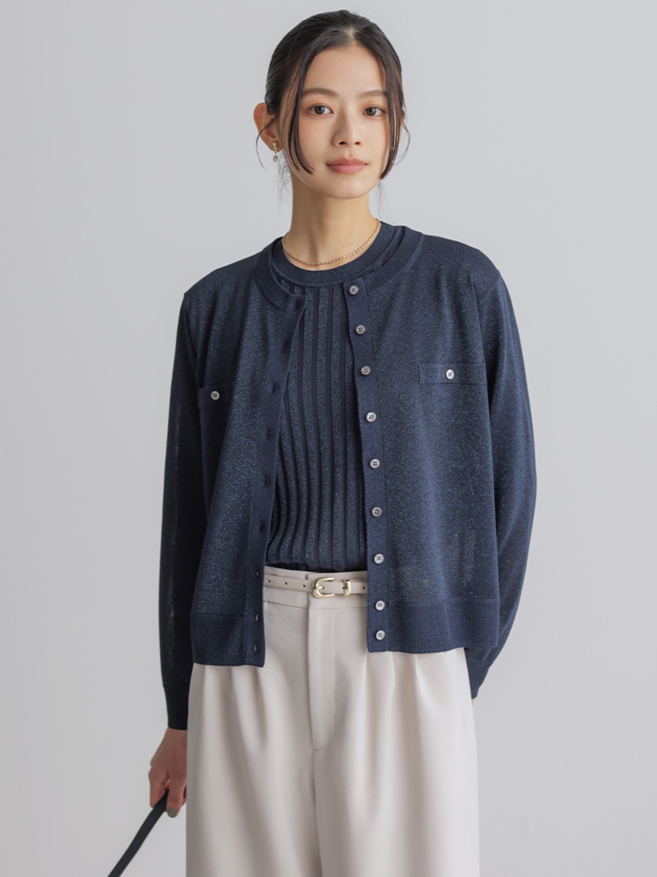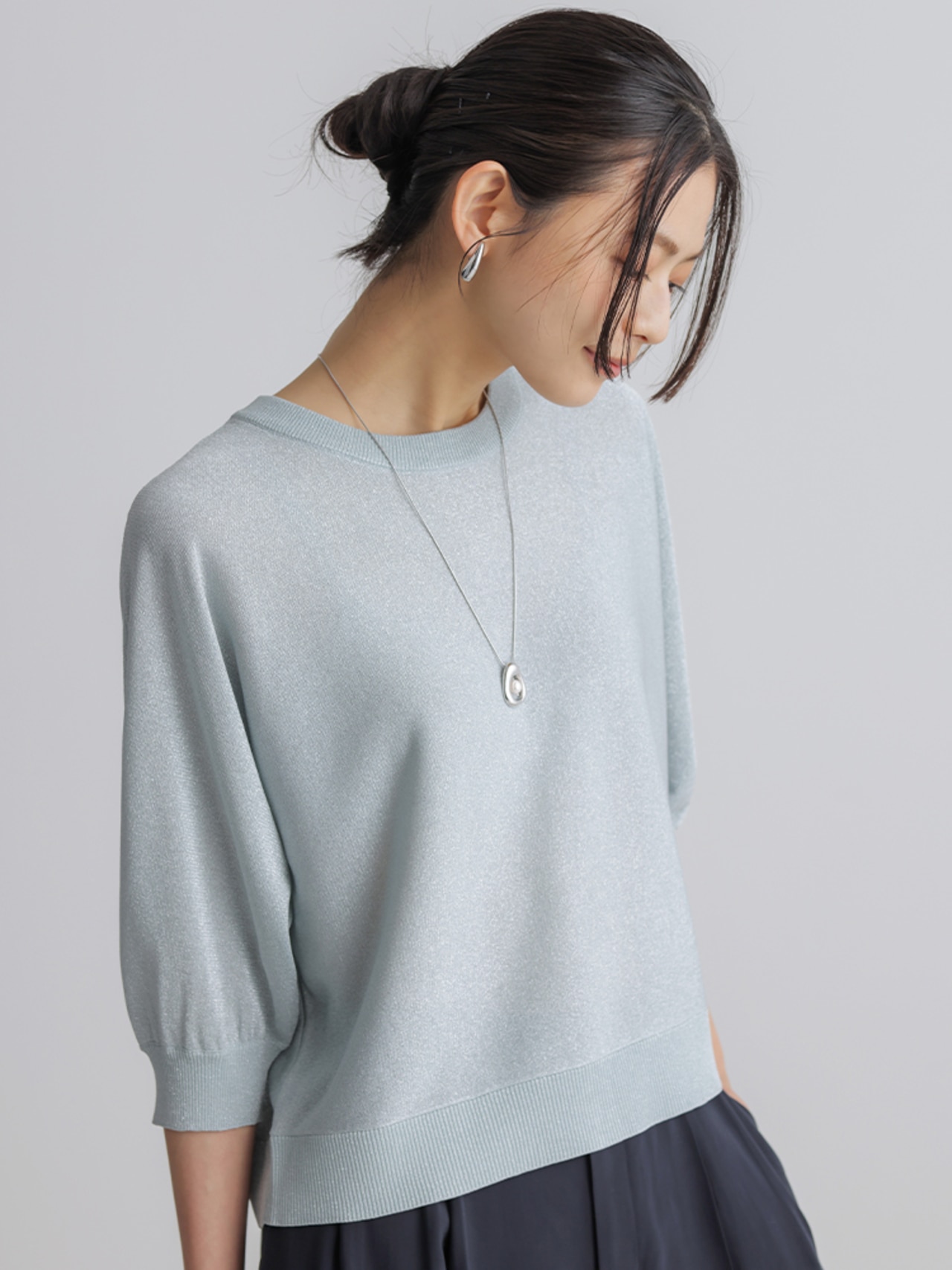 こなれ見えするワントーンコーデは、ニュアンスの違うアイボリー×グレーで洒落感UP。小物は白でクリーンにまとめて。