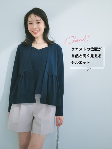 後ろが長めのデザインなので、気になるヒップラインはカバーしつつ、すっきり見えるのも安心感があって嬉しいポイント。あと実はポケットも付いていて、こういうちょっとした機能性もすごく便利で。セットで着るのはもちろんなんですが、カーディガンとしてワンピースの上に羽織ったり、手持ちのアイテムとも自然に馴染むので、着回しもしやすいです。前・横・後ろ、どこから見てもシルエットが綺麗なので、“とりあえずこれ着ておけば大丈夫”と思える一枚だと思います。