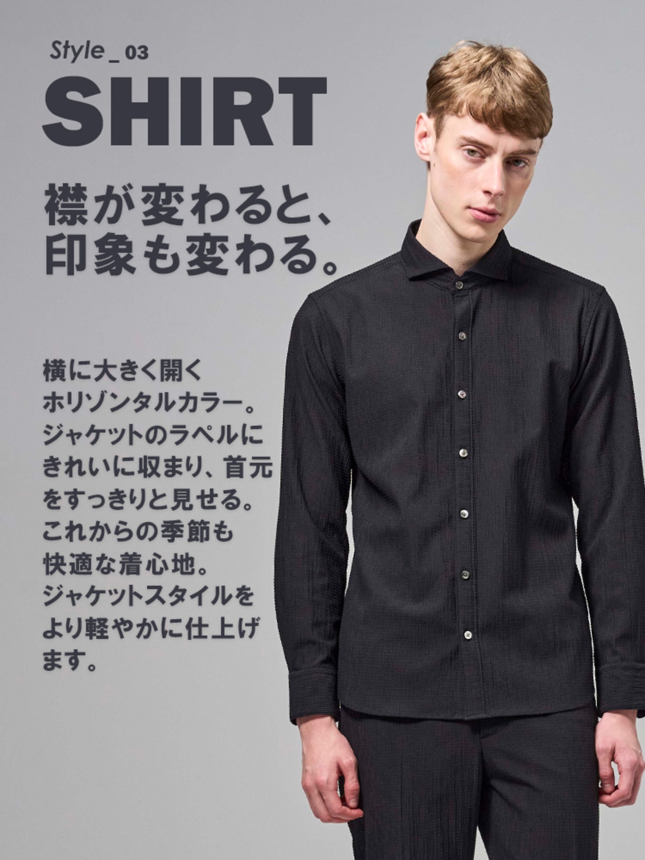 →外出も出張もこれ一着で。イージーケアで毎日の相棒にぴったり。