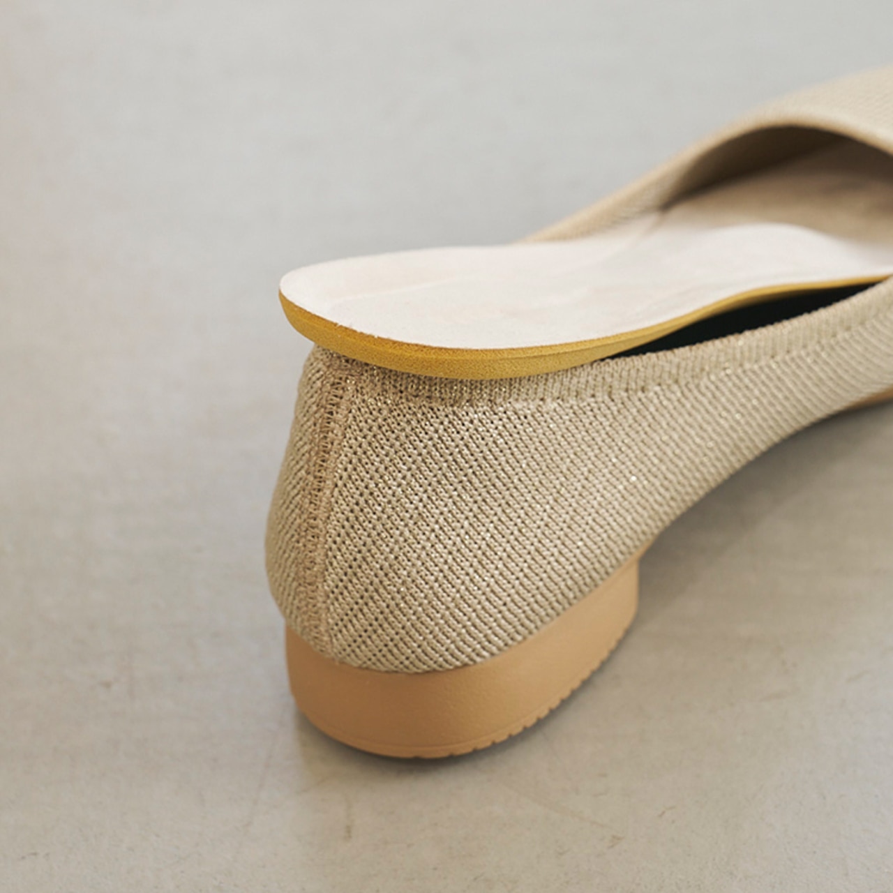 ほどよく反ったつま先設計で、美しいシルエットとスムーズな足運びを両立。芯の形状を見直し、よりやわらかな履き心地に仕上げました。かかとには靴擦れ防止クッションを内蔵。外側に響かず、きれいなラインをキープします。 -