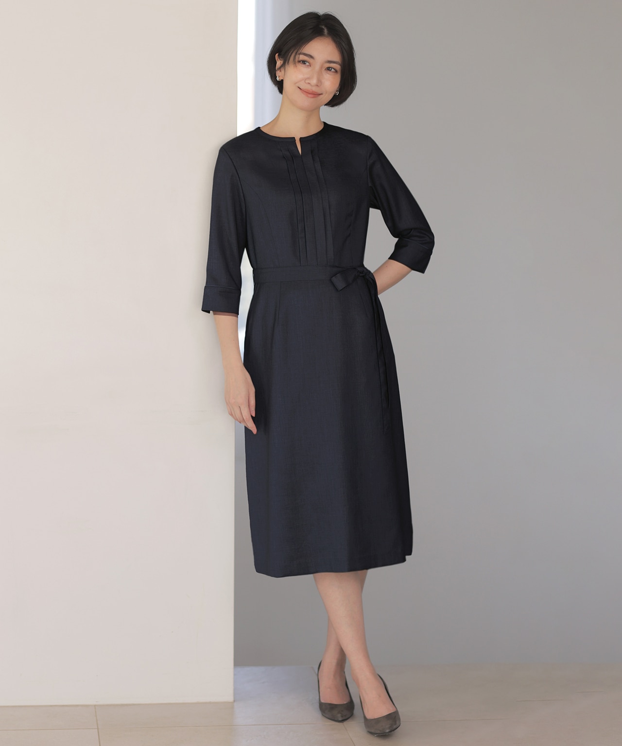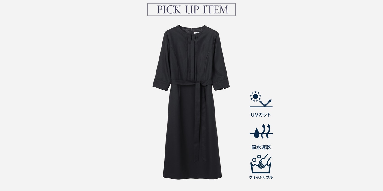 1枚で着てもジャケットと合わせても、きちんとした上品な印象で着られるワンピース。嬉しい機能性充実で、ケアしやすいのも嬉しいポイント。