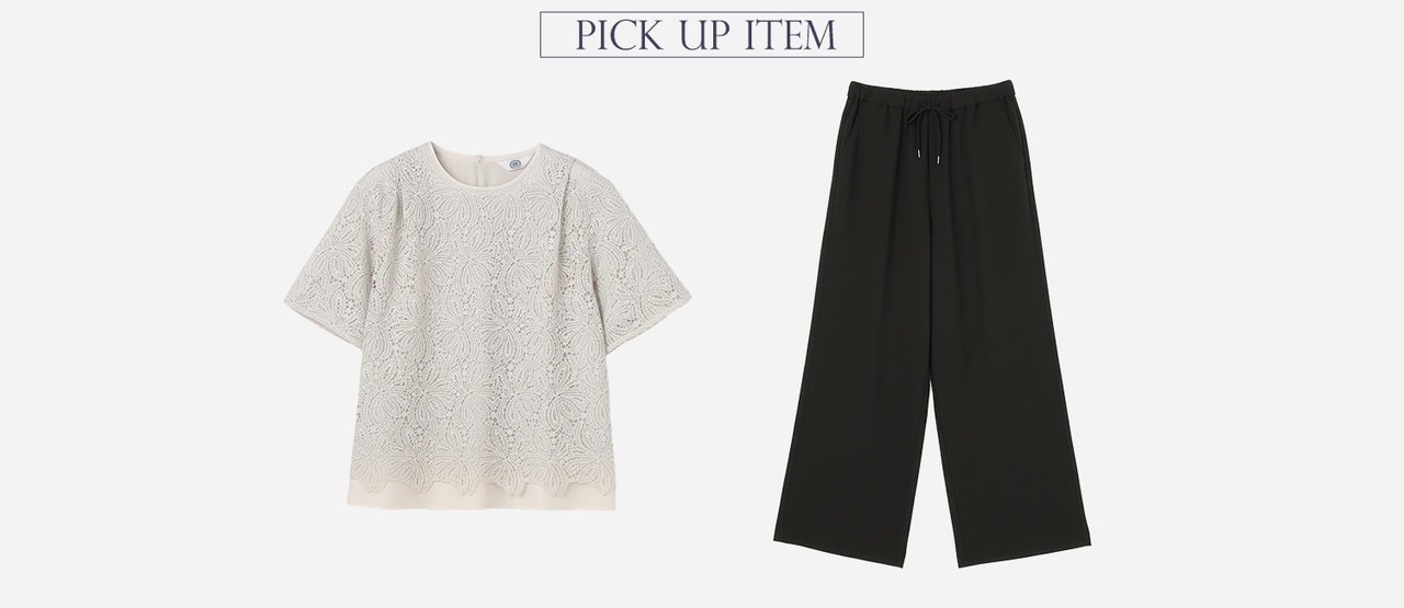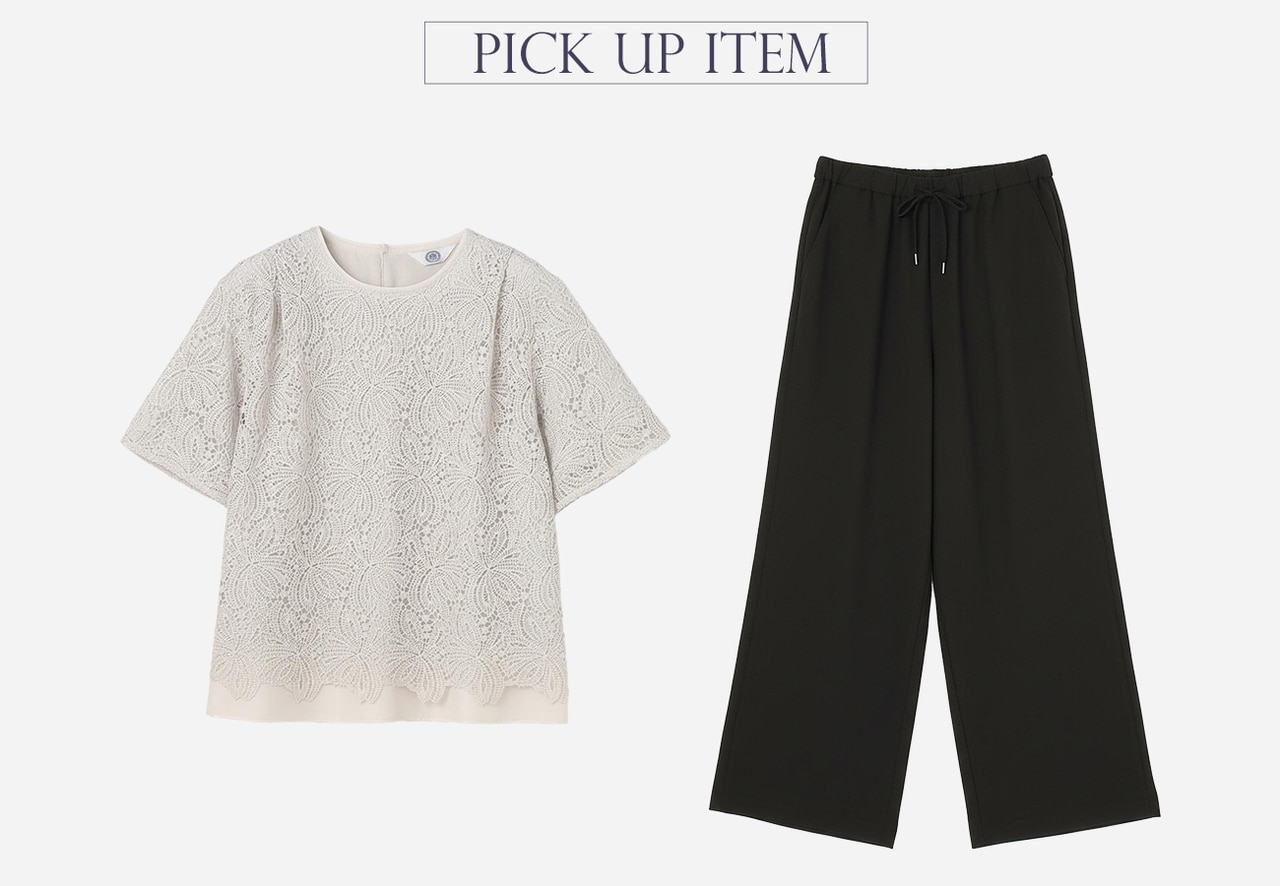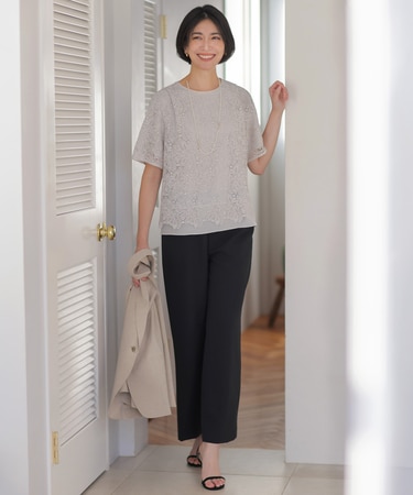繊細な大柄レースが魅力の、1枚で決まるレースカットソー。エレガンスな印象を与えつつも、カットソー素材で着心地のよさも叶えたアイテム。