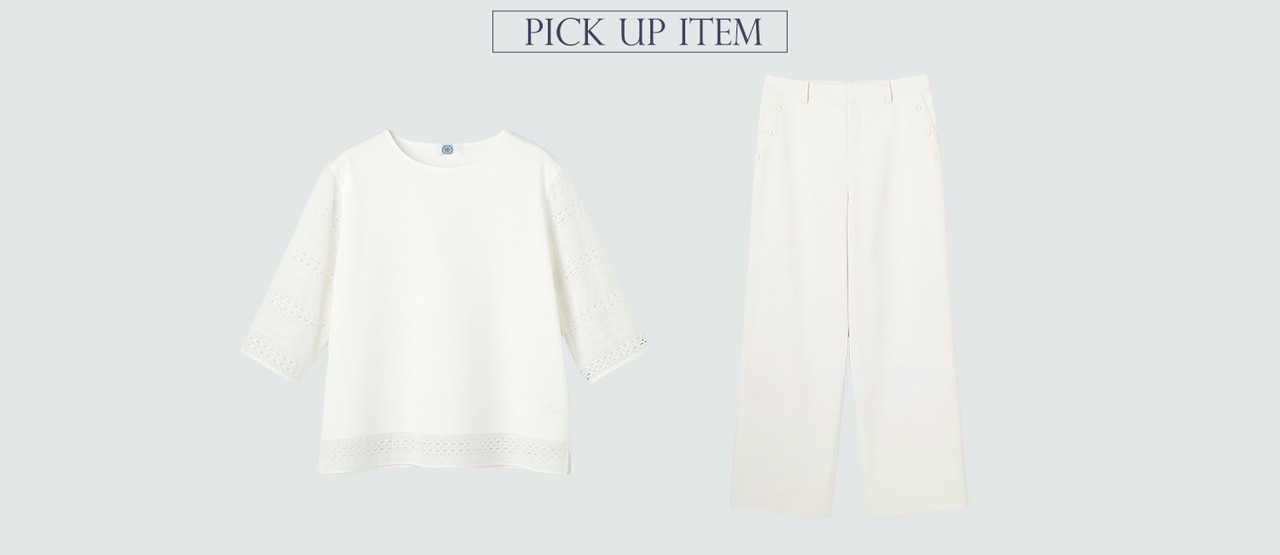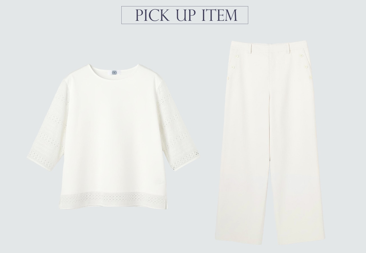 爽やかなマリンディテールが映える、ストレッチの効いたワイドストレートパンツ。春夏にふさわしいドライで軽やかな穿き心地。
