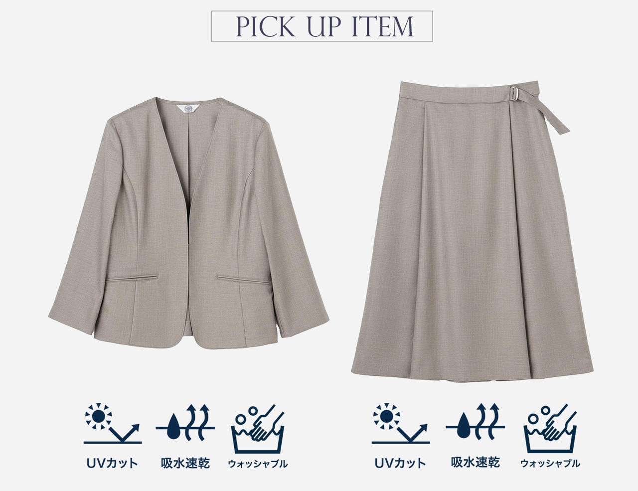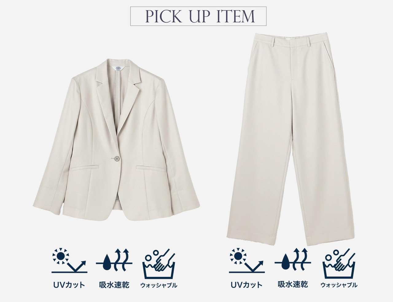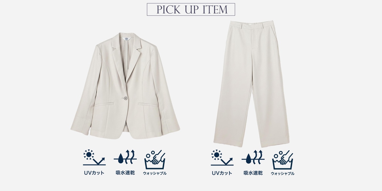 UVケア&洗えるスーツで、今から汗ばむ季節まで、長く着回せるのが嬉しい。