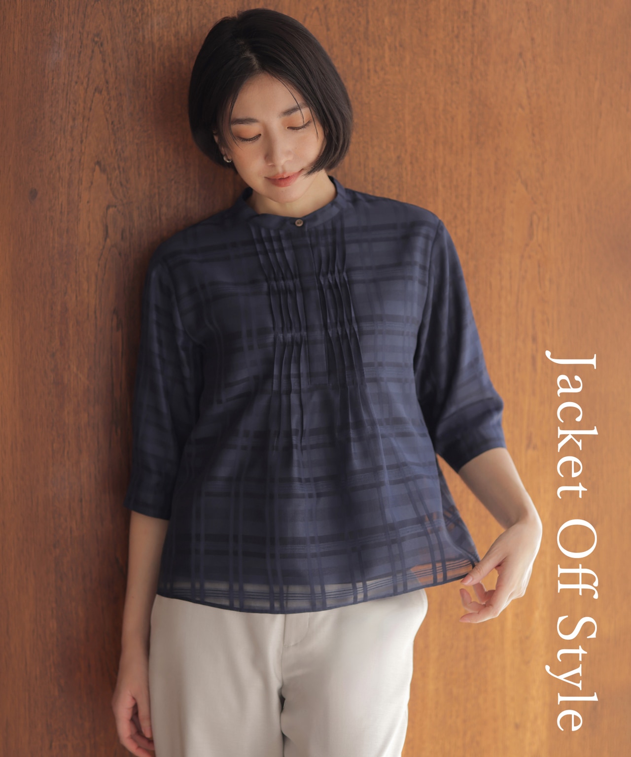 羽織感覚でさらりと着られる、軽やかなノーカラージャケット。フロントホック1つで留めるミニマルなデザイン。機能性も充実。