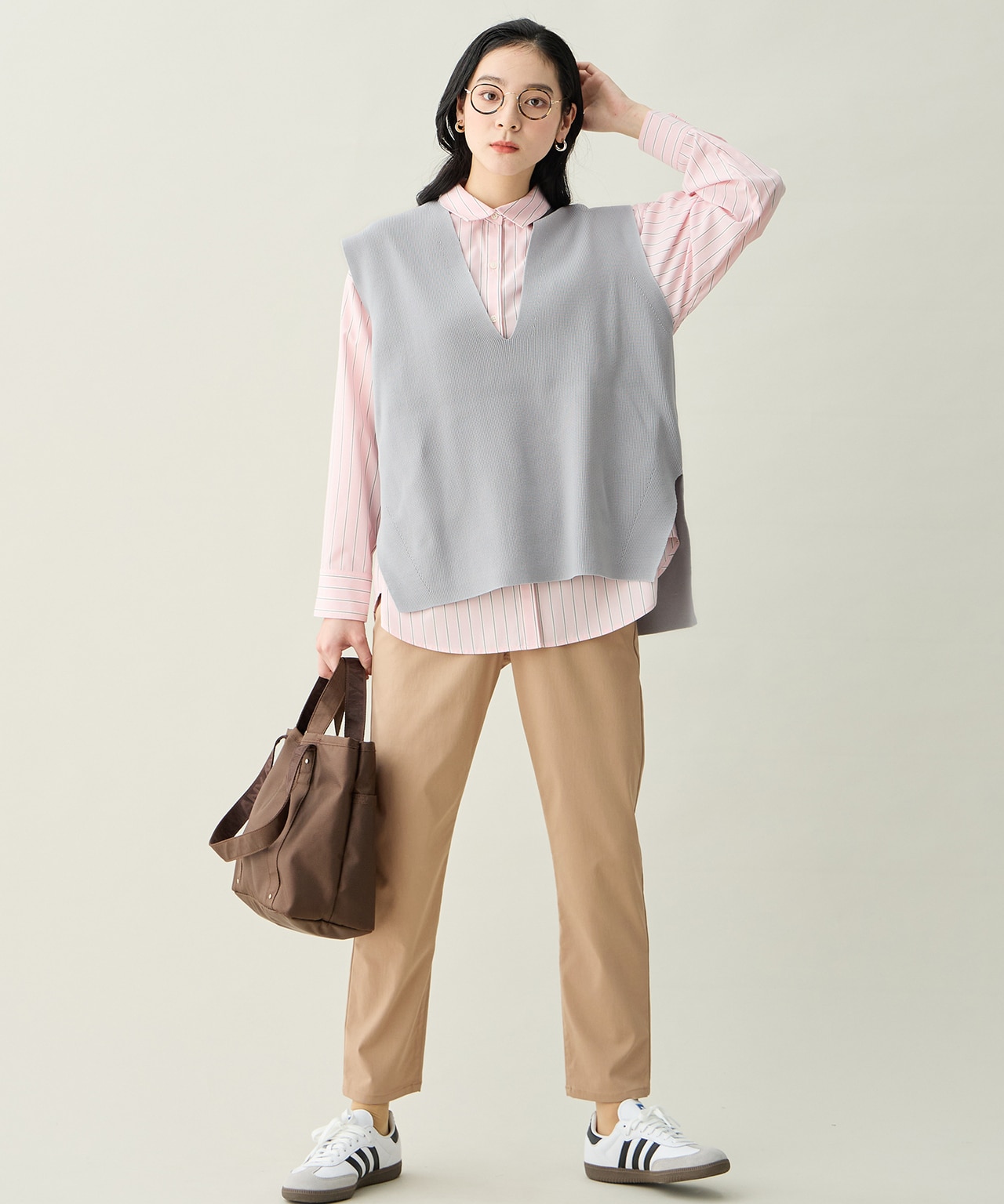 ▼1枚目ベージュニットのコーディネートアイテム