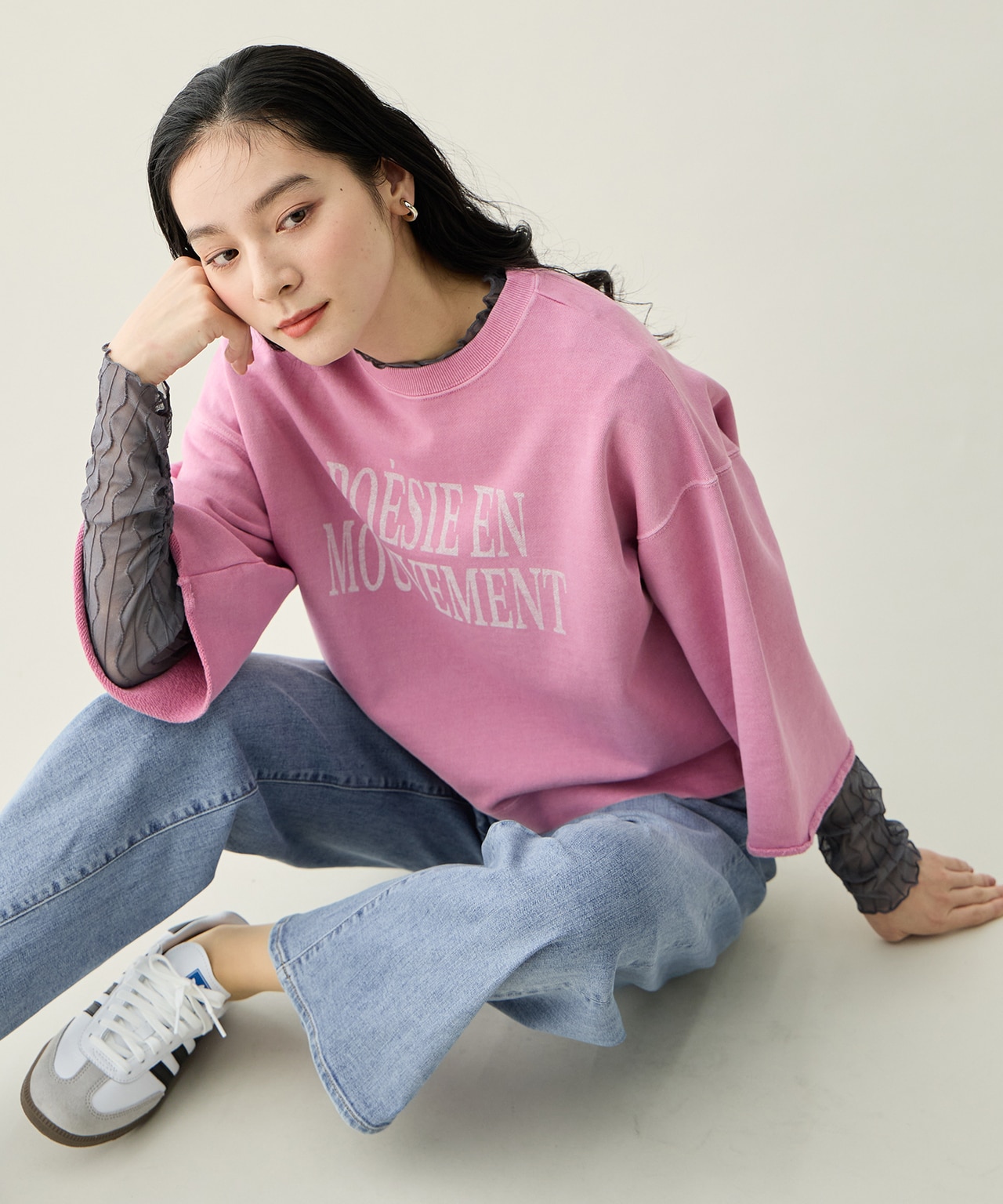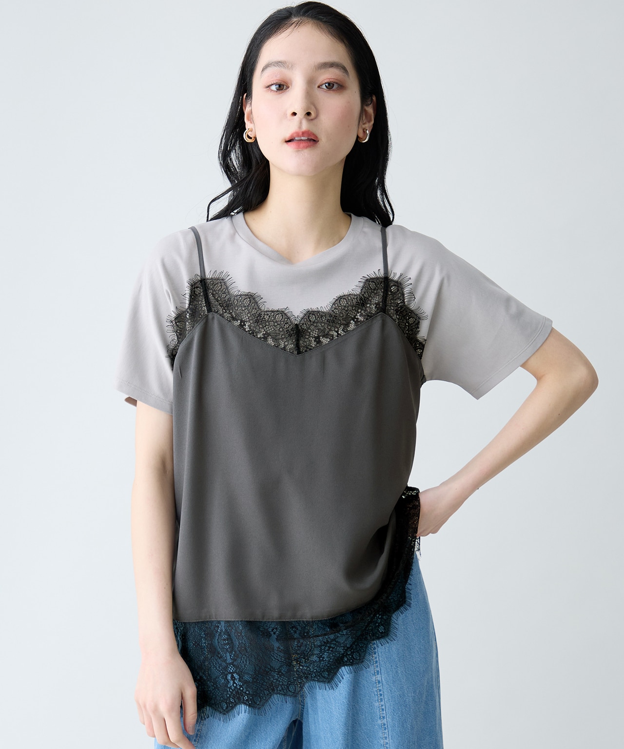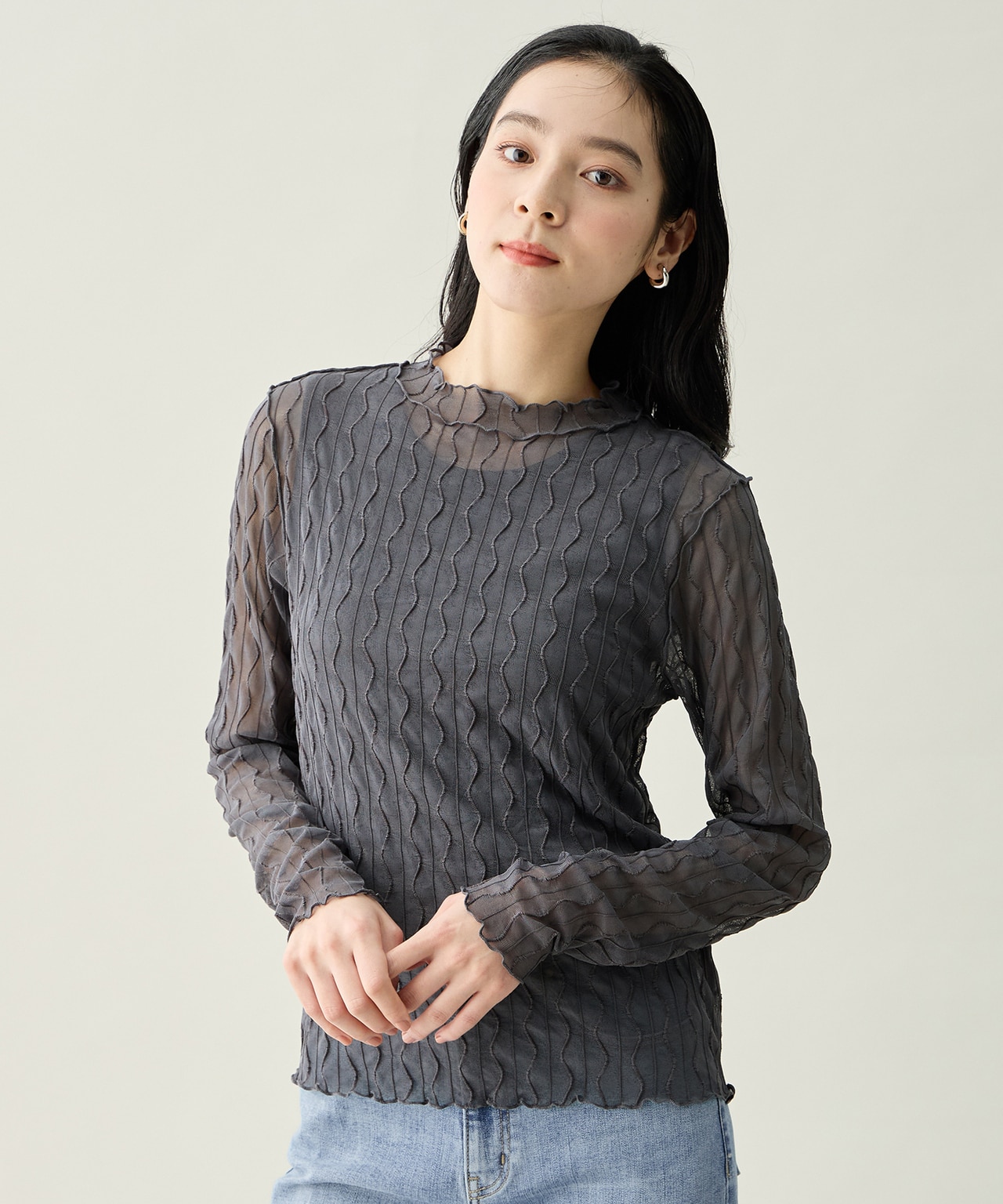 抜け感を作る繊細トップス