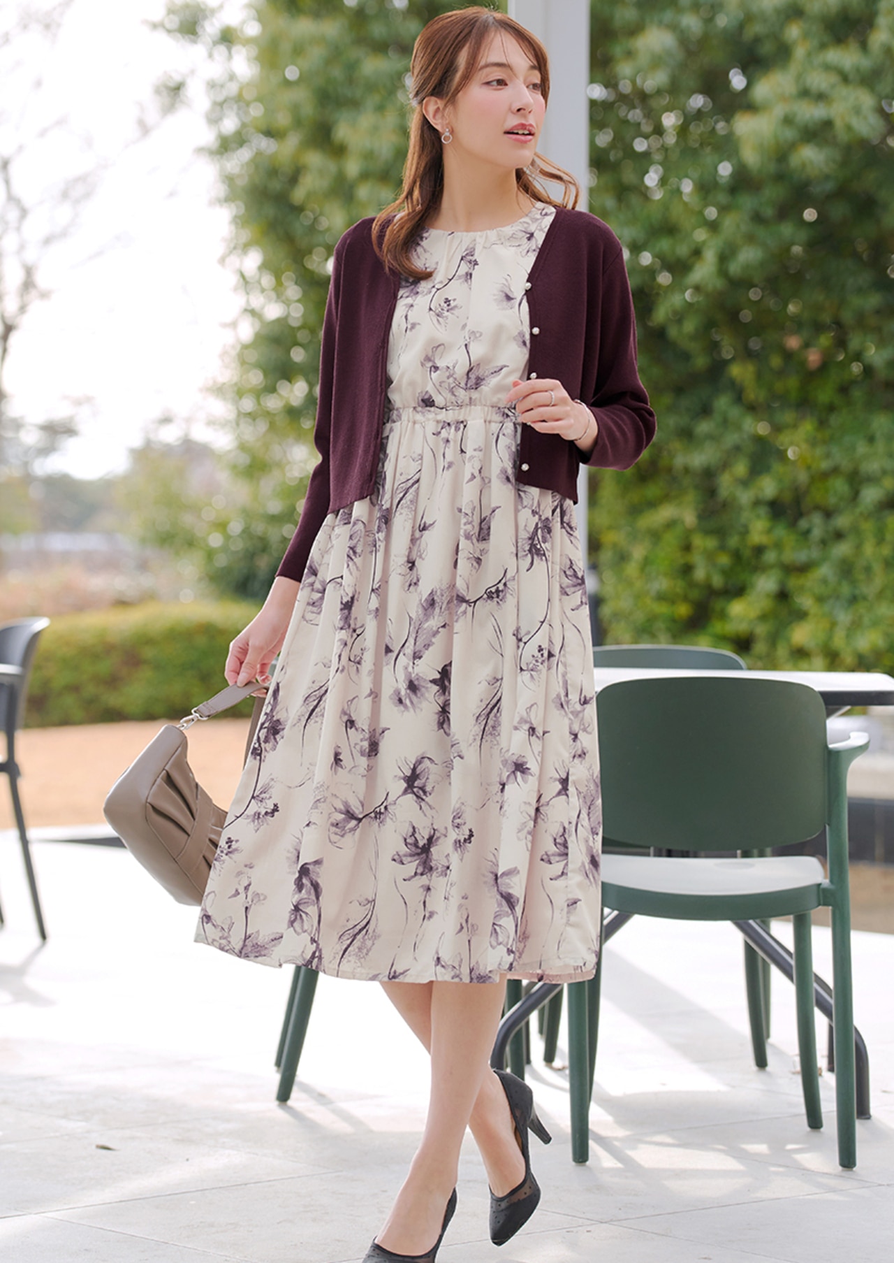 上品な花柄ワンピースと接触冷感機能つきカーディガンのセットアイテム。春から真夏にも大活躍間違いなし。今年の新作一番人気のアイテムです。