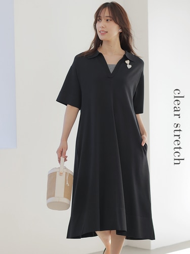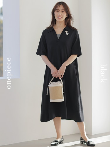 美しいAラインで仕上げたスキッパーニットワンピ。