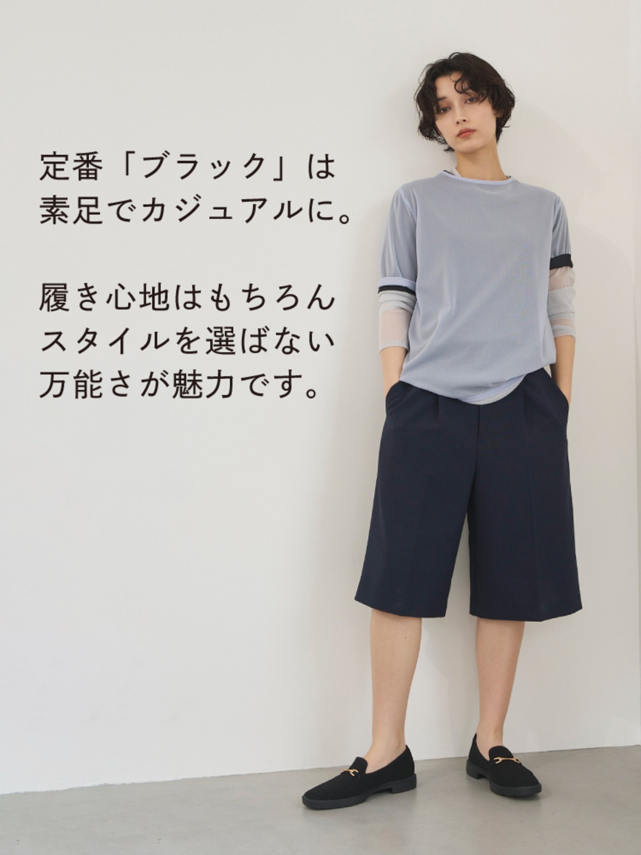 メッシュ素材で通気性がありながら透け感は控えめで、季節を選ばず履けそうなのも◎ -