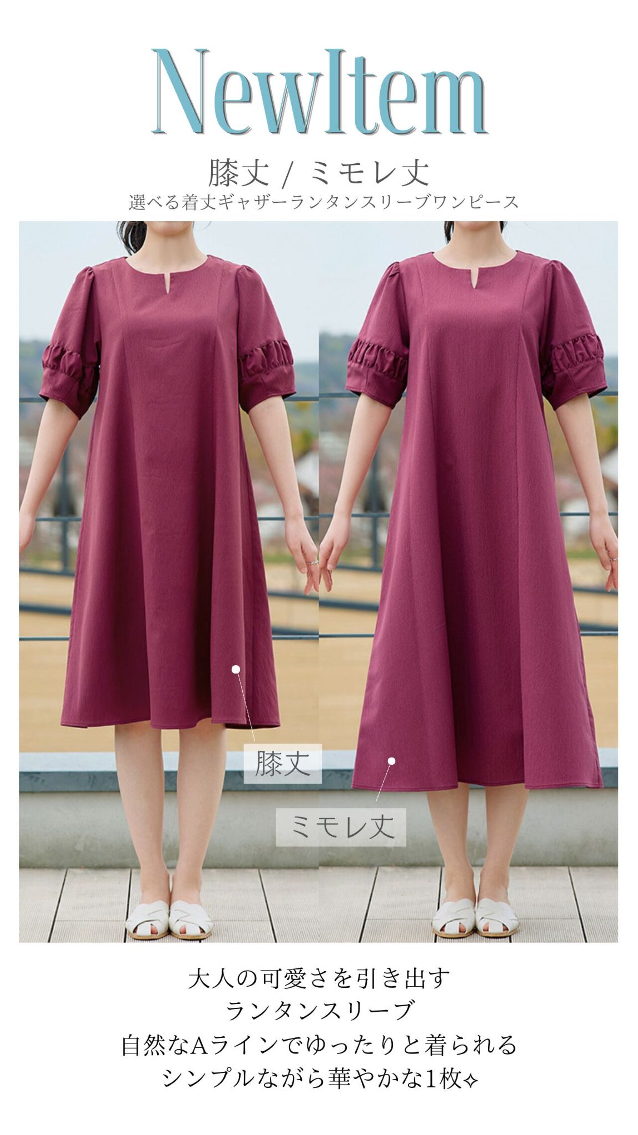 肌触り抜群で涼しく、お腹周りがゆったりしながらも上品なシルエットが魅力のワンピース。Aラインの美しい形で気になる部分をカバーし、着やせ効果も抜群。さらに着丈が少し短いとの声にお応えして、ミモレ丈もご用意しました。選べる着丈で自分に合ったおしゃれな一枚を楽しんでみてください♪
