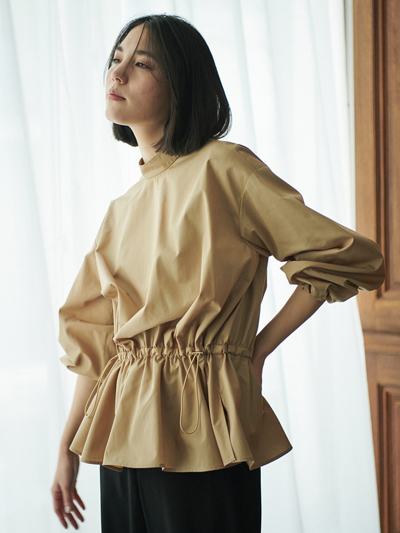 ブラウジングできるウエストが可愛いブラウスです。ぽわっと膨らんだ袖+ハイネックで甘くなりすぎず綺麗にまとまっています。パンツにもスカートにも合わせやすい丈感も魅力です。