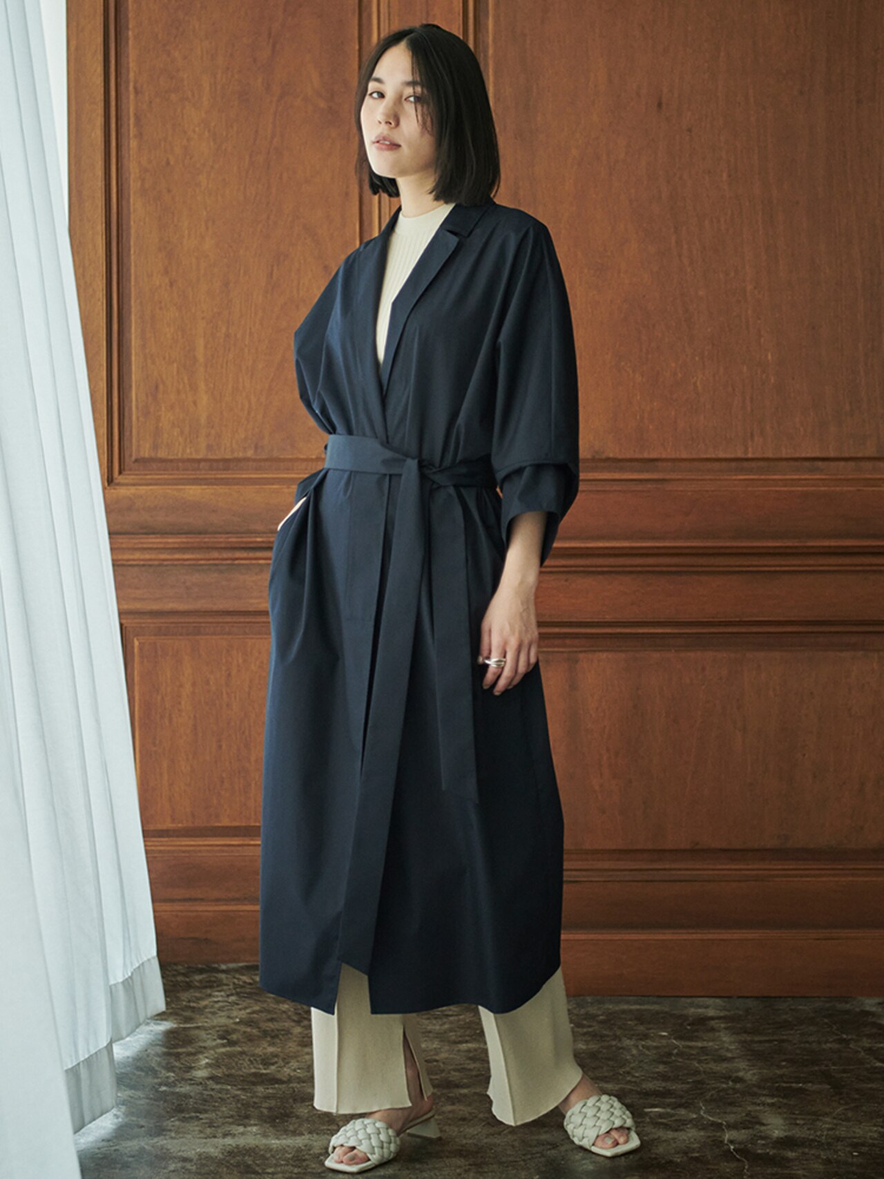 附属のベルトでウエストマークしたり様々な着こなしが楽しめます。撥水・撥油加工されているので、雨の日のお出かけも濡れや汚れを気にせずに過ごせるのも嬉しいポイントです。