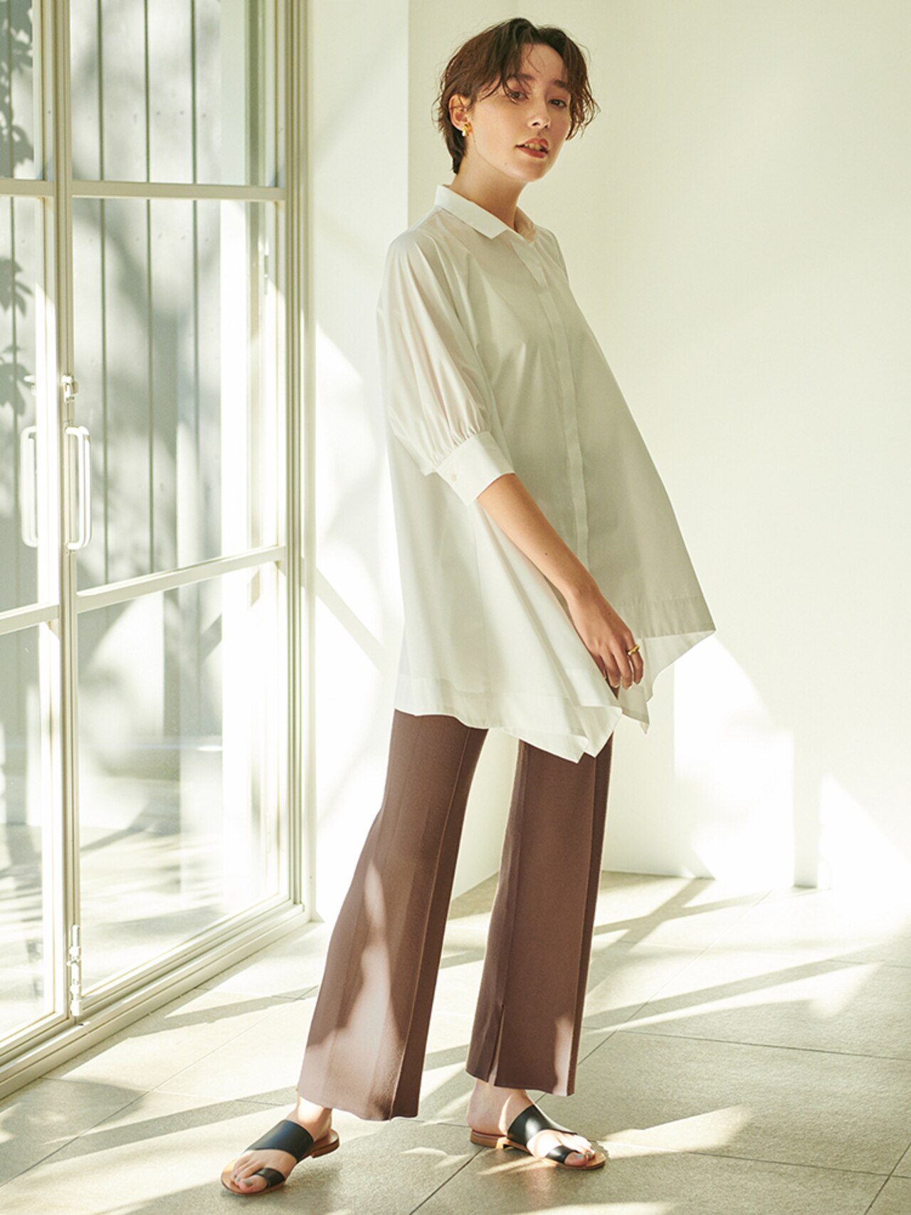 ハンカチーフヘムとギャザースリーブがベストバランスのイットシャツ