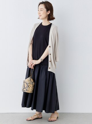 高機能で着心地抜群のカットソー素材と控えめなハリツヤが上品なシャカ素材をコンビで使用したワンピとトップスです。ワンピースはちんと感と可愛さをバランスよく兼ね備えた、シーンレスで使える1着。