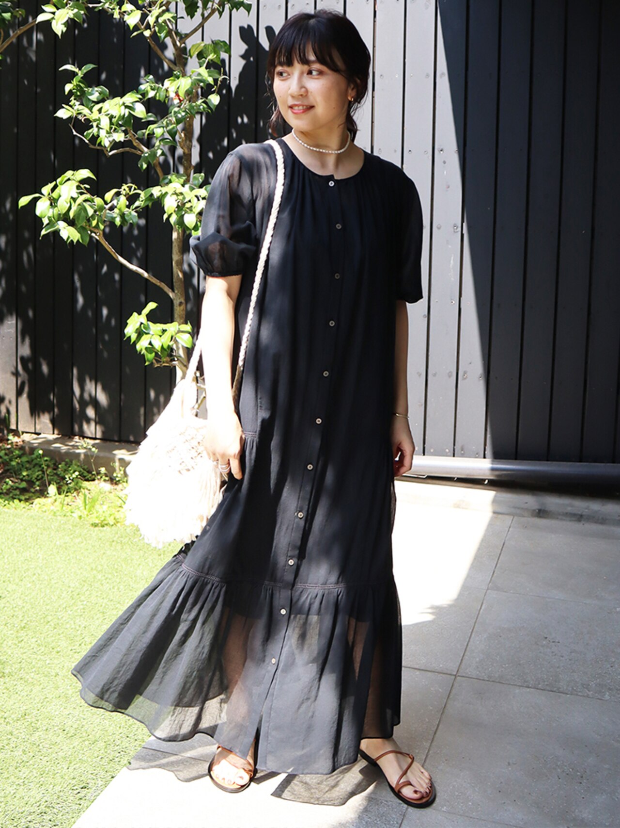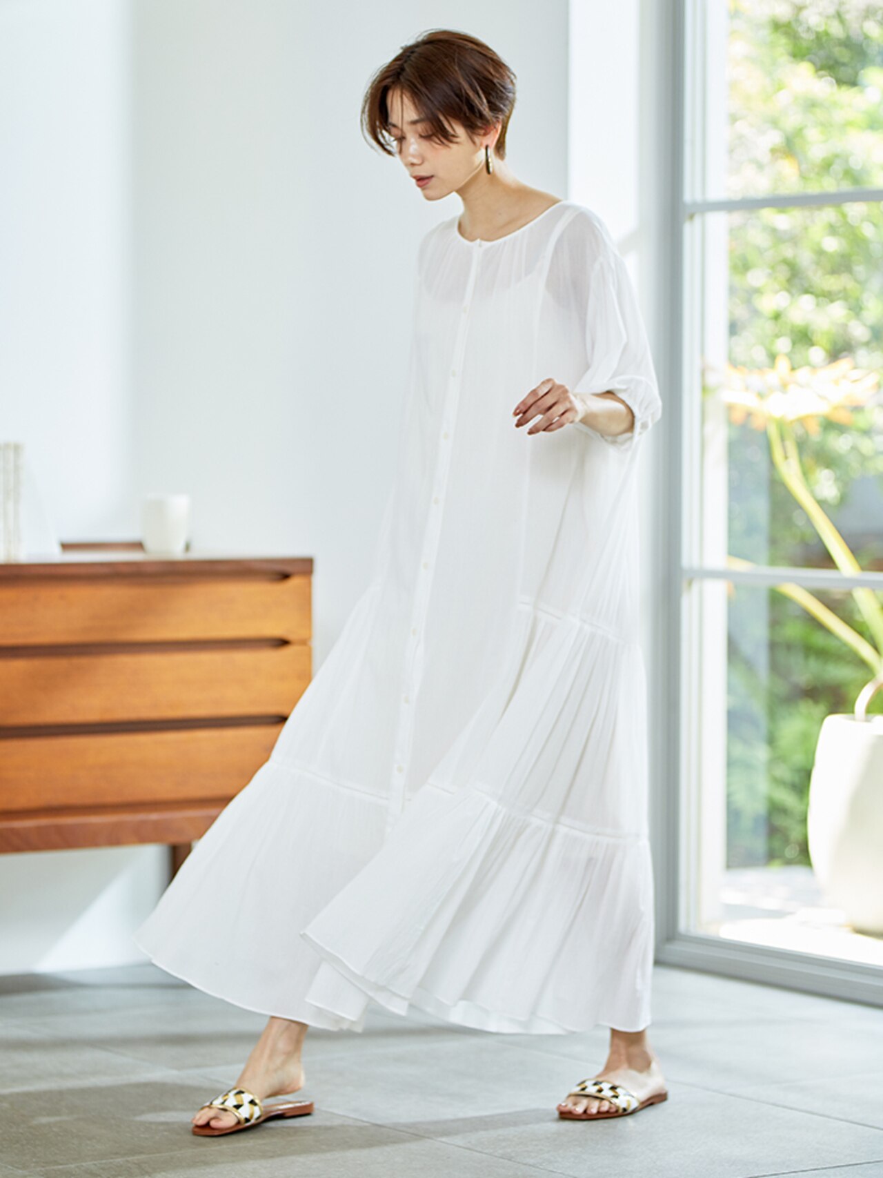 ふんわり広がるコットンシフォンのワンピも、エアリーな透け感とナチュラルな風合いで甘さだけじゃないこなれ感を演出。