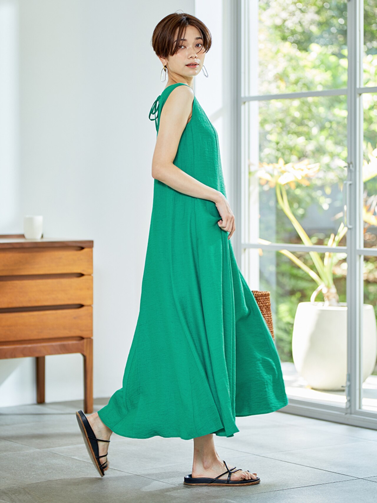 着て涼しく目にも爽やか!ワンピ×かごバッグ