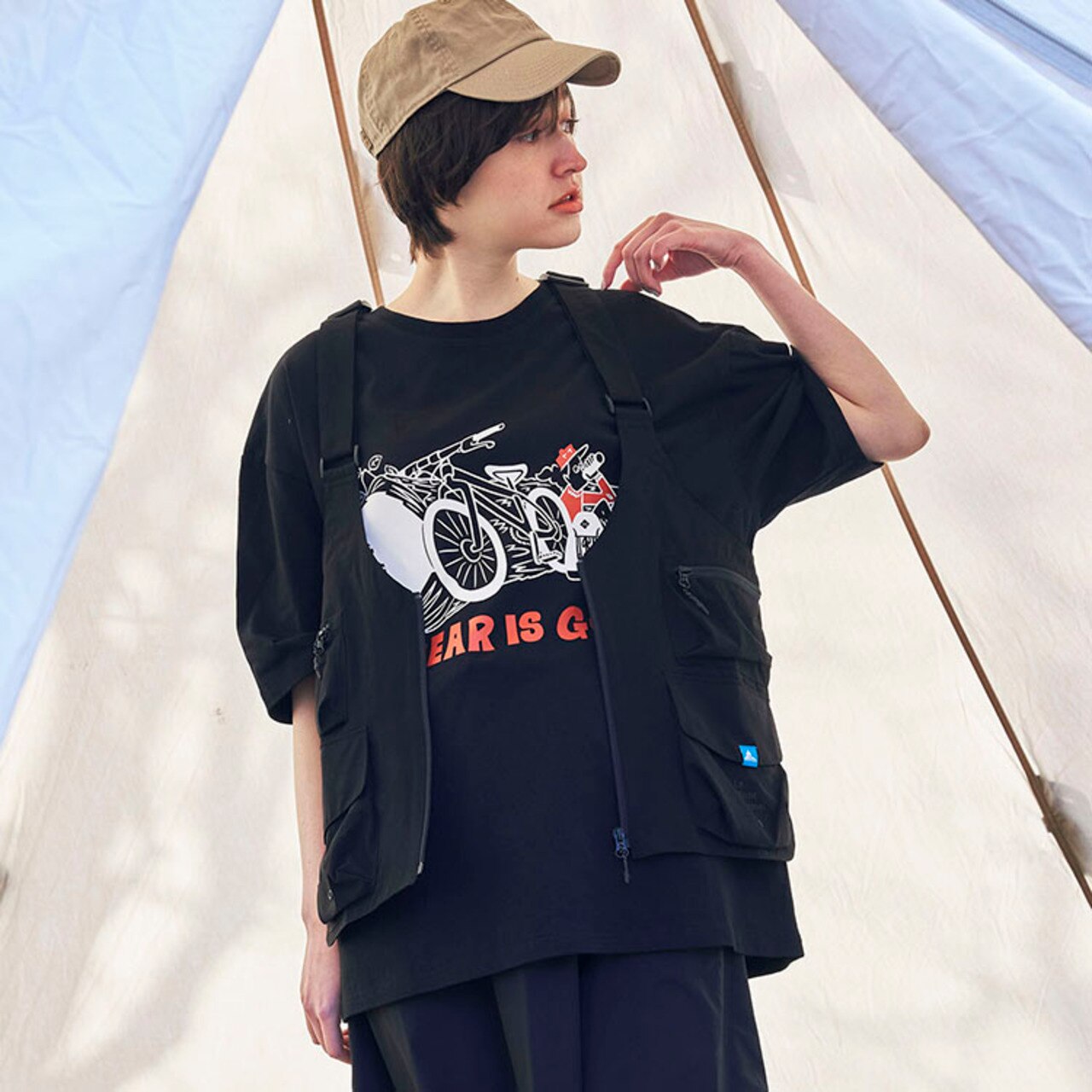裾スリットを長めにとり、アウトドアシーンでも動きやすい仕様にしています。