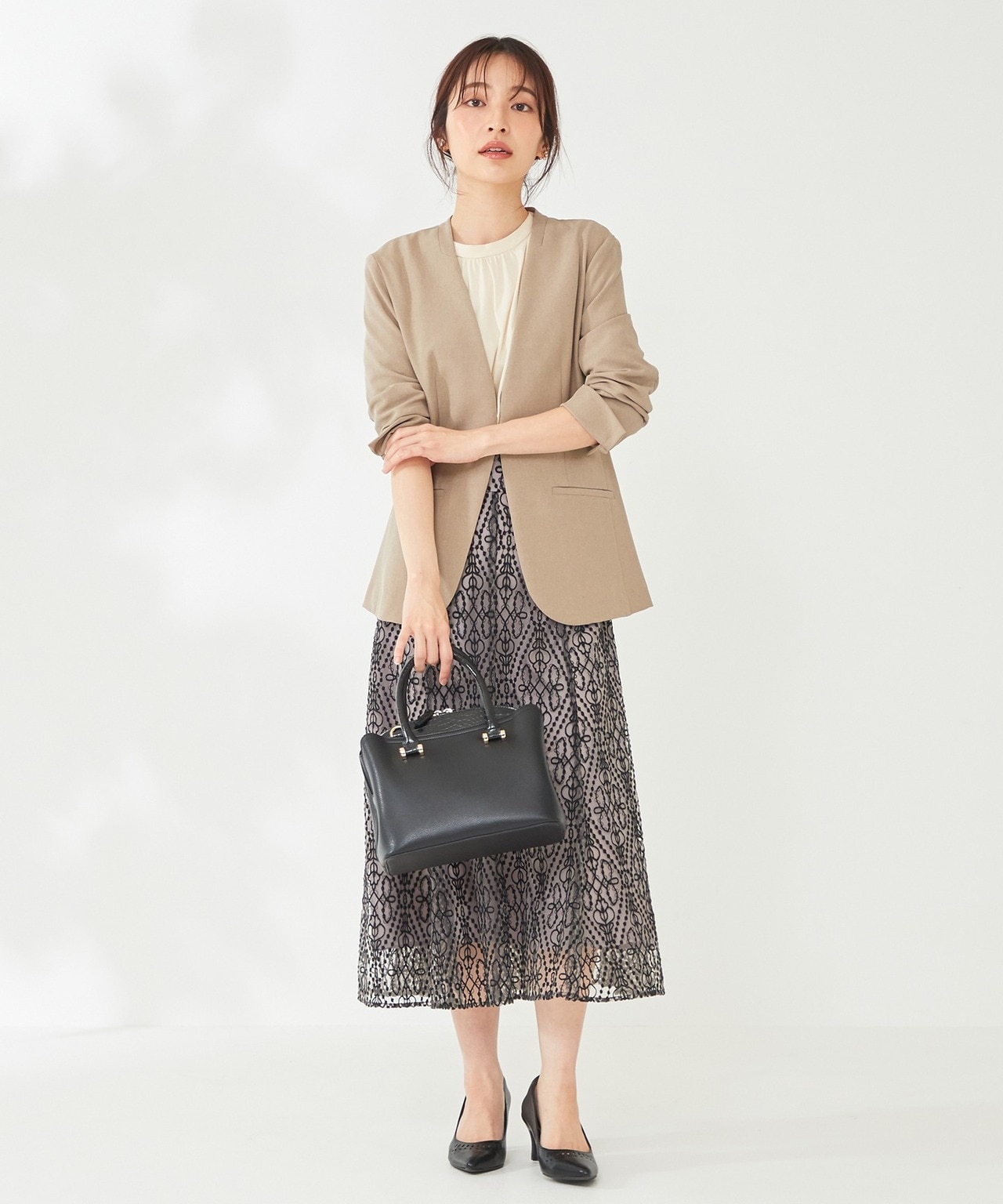 【ON】柔らかみのあるモカカラーのジャケットを羽織ってきちんと感をプラス。インナーは首のつまったものを選ぶとより上品に。【セットアップ可】リネンライクポリエステル ジャケット【セットアップ可】リネンライクポリエステル ジャケットany SiS¥8,900(税込)→¥4,449(税込)ハイゲージカット ブラウスハイゲージカット ブラウスany SiS¥4,500(税込)→¥2,249(税込)【洗える】アラベスクダイヤエンブロイダリー スカート【洗える】アラベスクダイヤエンブロイダリー スカートany SiS¥8,900(税込)→¥4,449(税込)▼OTHER ITEMS