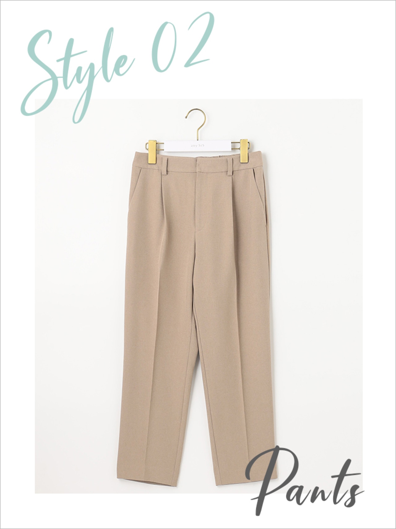 合わせるトップスを選ばない、万能テーパードパンツは着回し自由自在!センタープレスがしっかり入っているものを選んですっきりとキレイ見え。