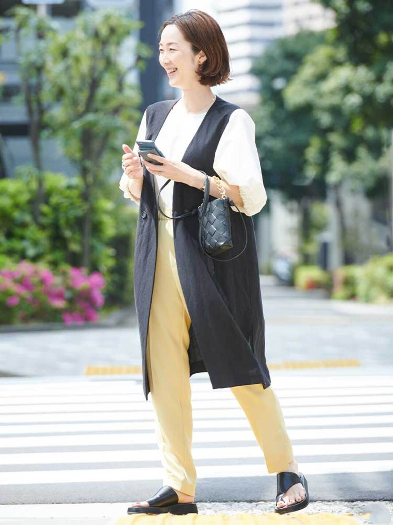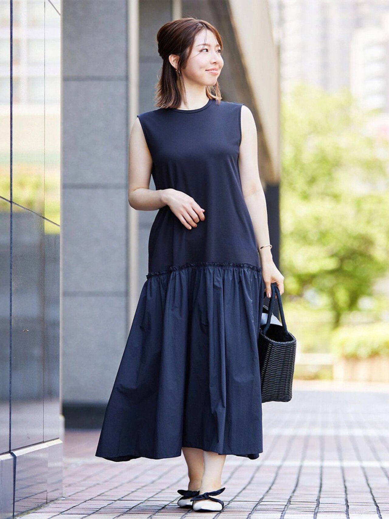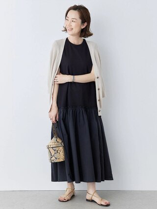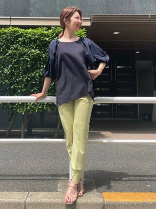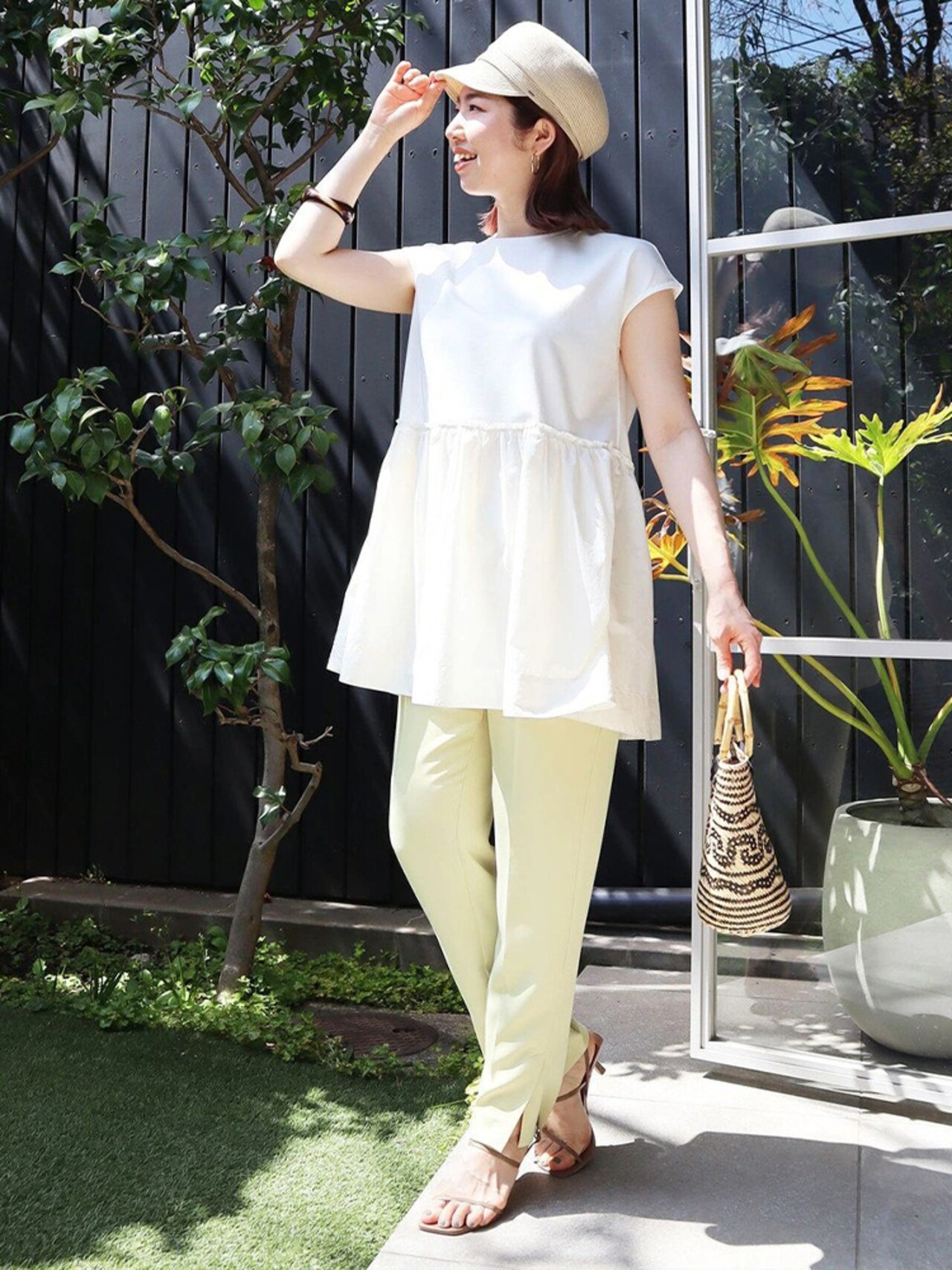 これまでパンツやTシャツが大好評だった「マイビューティ」シリーズから新作登場!高機能で着心地抜群のカットソー素材と控えめなハリツヤが上品なシャカ素材をコンビで使用しています。