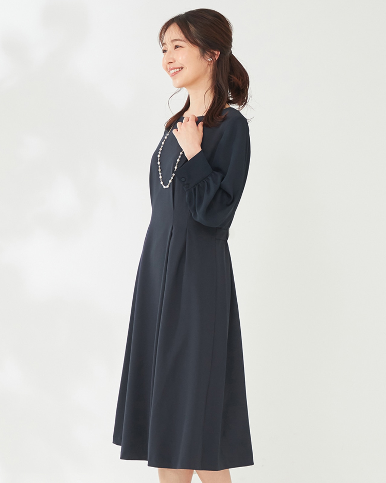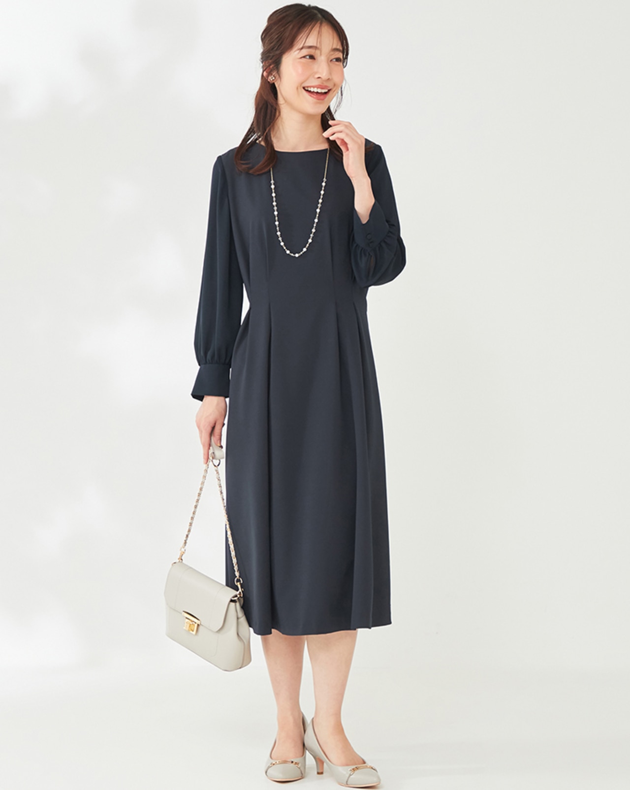 着用シーンが限られがちなオケージョンワンピも、シンプルで洗練されたワンピはディナーなどのちょっと特別なお出かけや、ジャケットと合わせて通勤スタイルにも応用可能◎