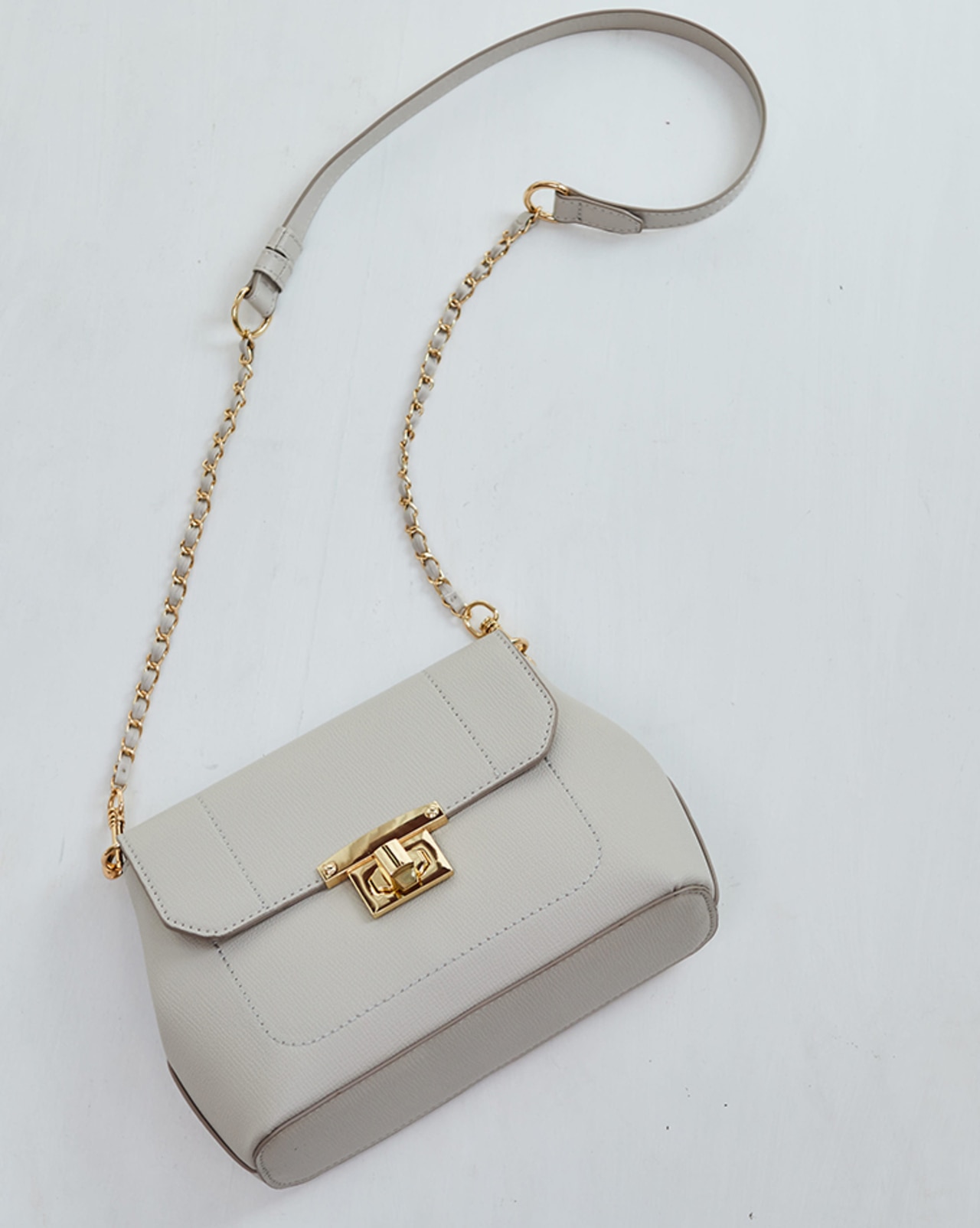 甘くなりすぎず大人に着こなせる落ち着いたカラーリングなので、シャイニーな小物と合わせてバランスよく仕上げるのが◎
