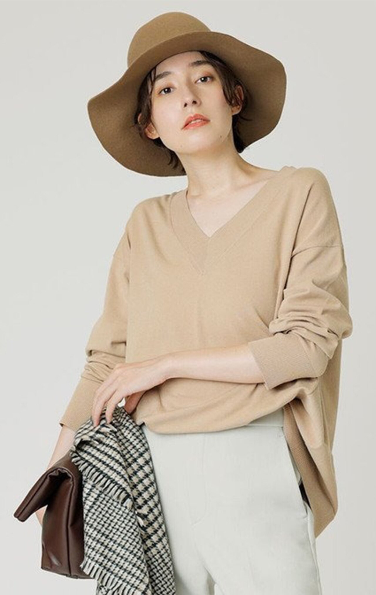 薄くてサラッとしていて、でもちゃんとニットのシルエットで、こういう着やすいニットが、一番重宝します!