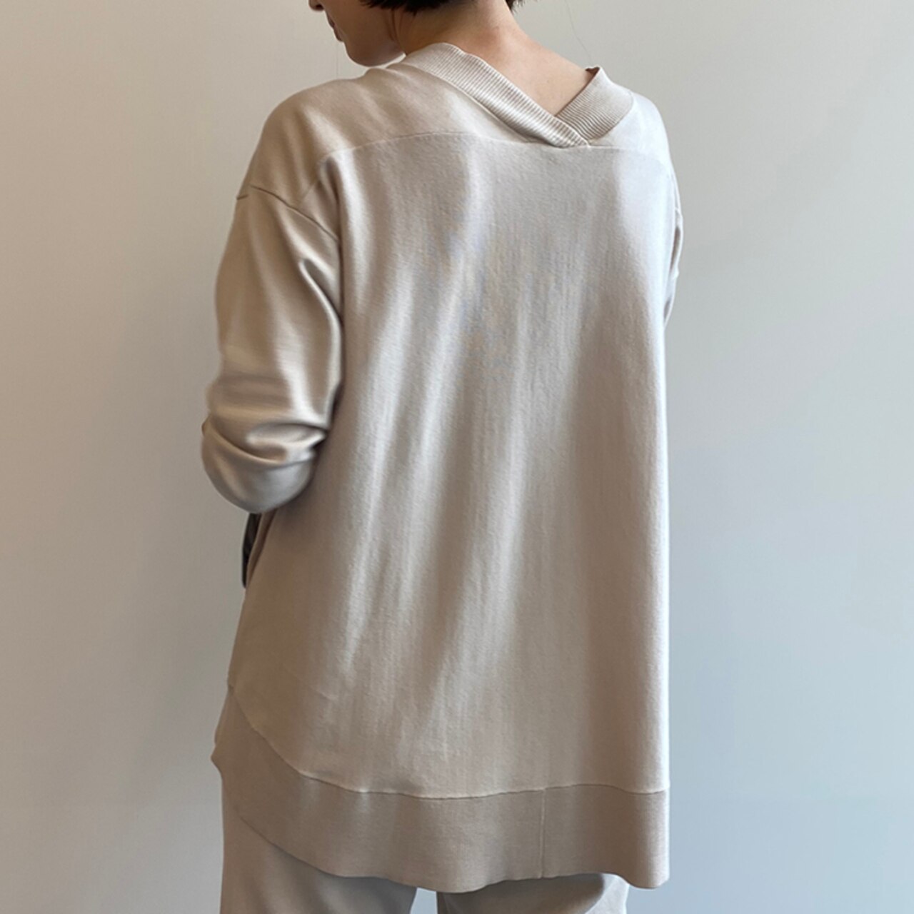 ローズ系購入。秋冬にぴったりな落ち着いた色合いです。後ろの襟元もVになっているので、ゆったりしたシルエットですがスッキリと見えます。