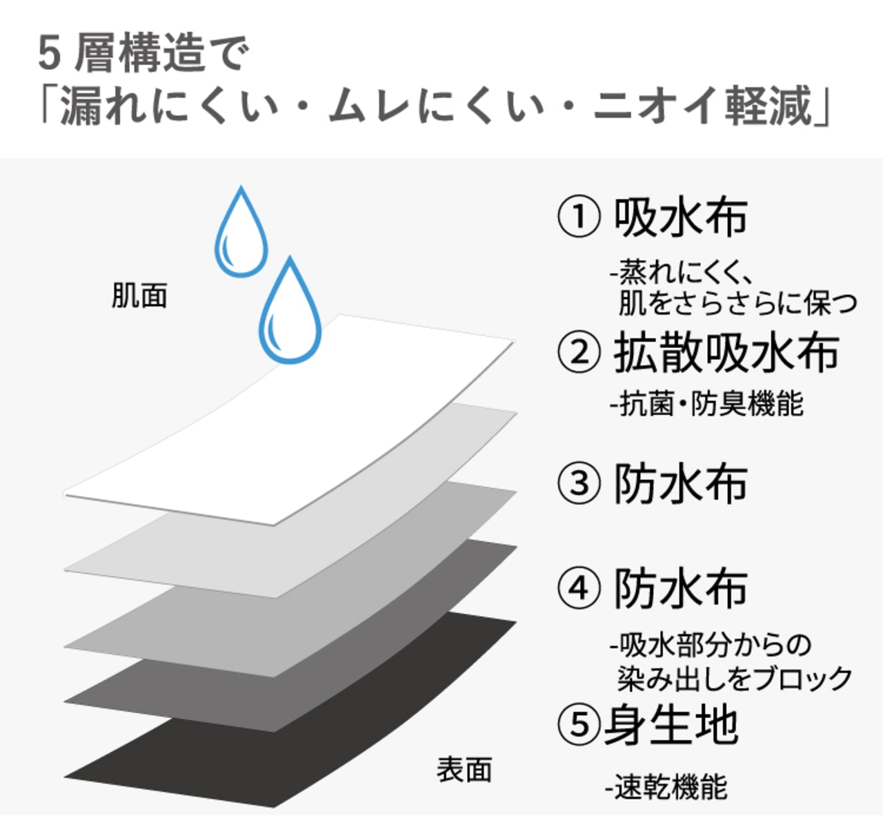 吸水性/吸湿性に優れ、肌を清潔に保つのに適した素材。