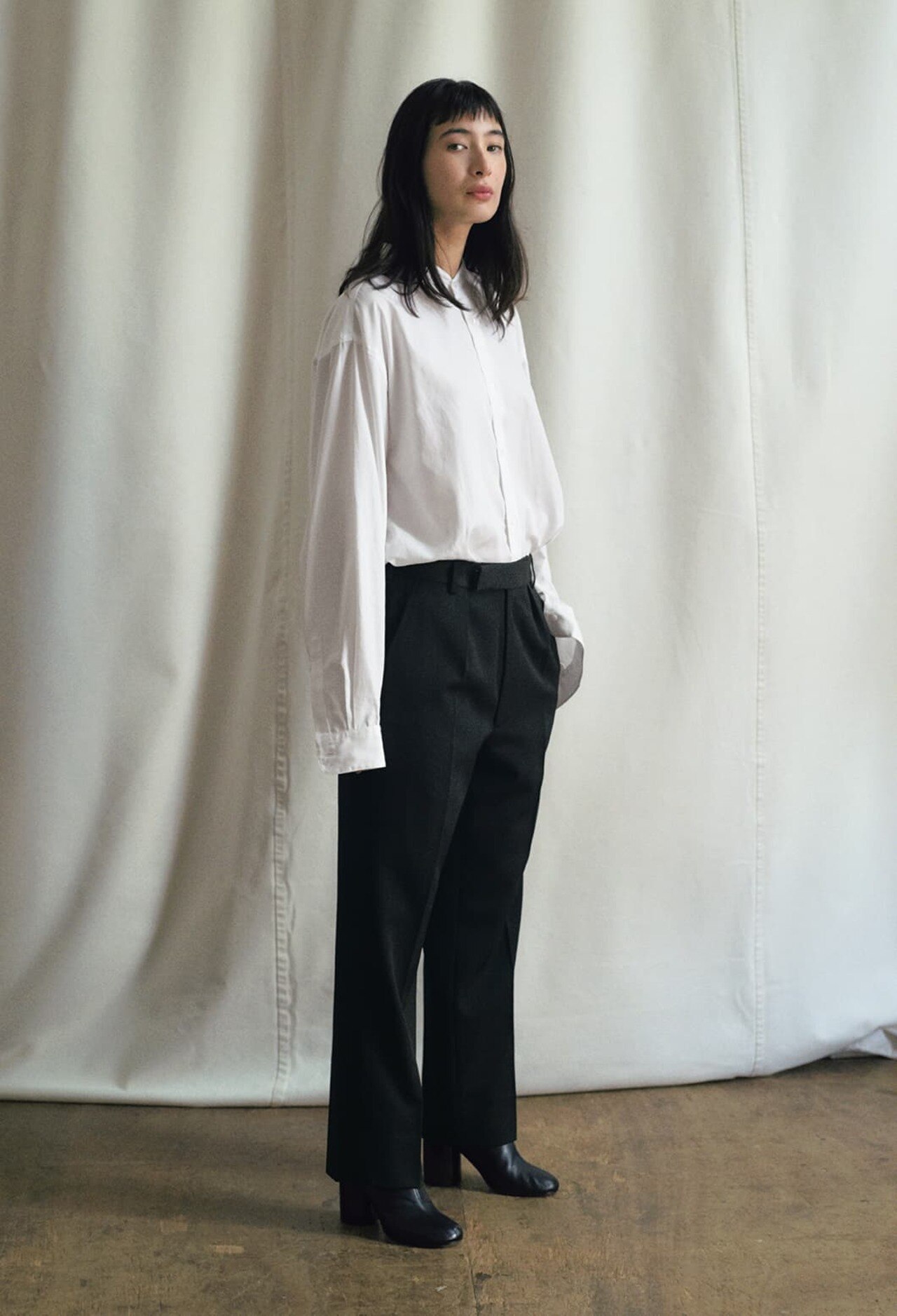 ハリとコシがありながら適度にしなやかで、立ち姿が美しいシルエットを構築。