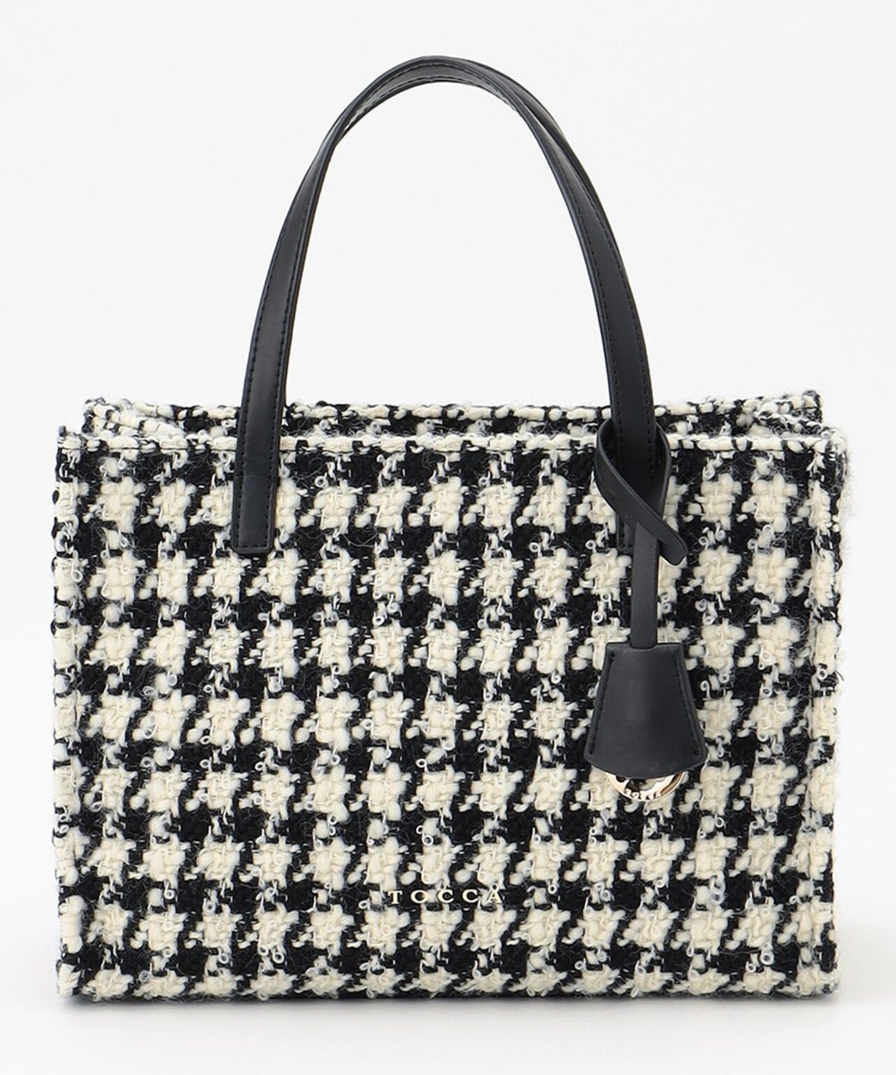 洋服でツイードはちょっと重いかも、、、という方にも取り入れやすいのはバッグ。フレンチシックを感じるエレガントなモノトーンの千鳥柄なら、シンプルなスタイルにも合わせやすい。バッグバッグTOCCA¥25,300(税込) -