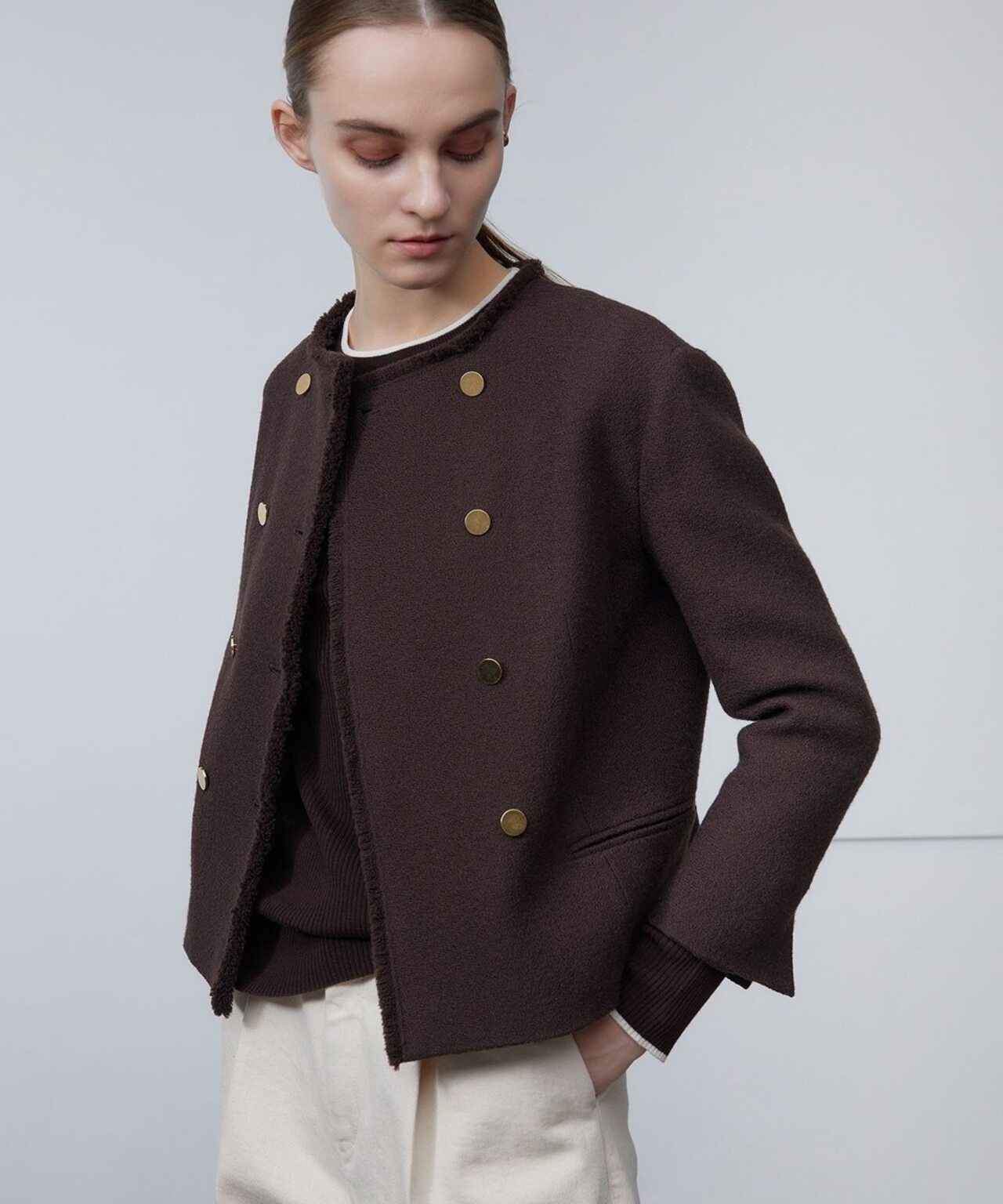 シックな濃茶のジャケットは、シャープな金ボタンと切りっぱなしのディテールがアクセントになり、クラシカルな中にモードさもちらり。古臭く見えない、新しいツイードジャケットのカタチ。ジャケットジャケットBEIGE,¥56,100(税込)→¥39,270(税込)ジャケットジャケットBEIGE,¥56,100(税込)→¥39,270(税込)