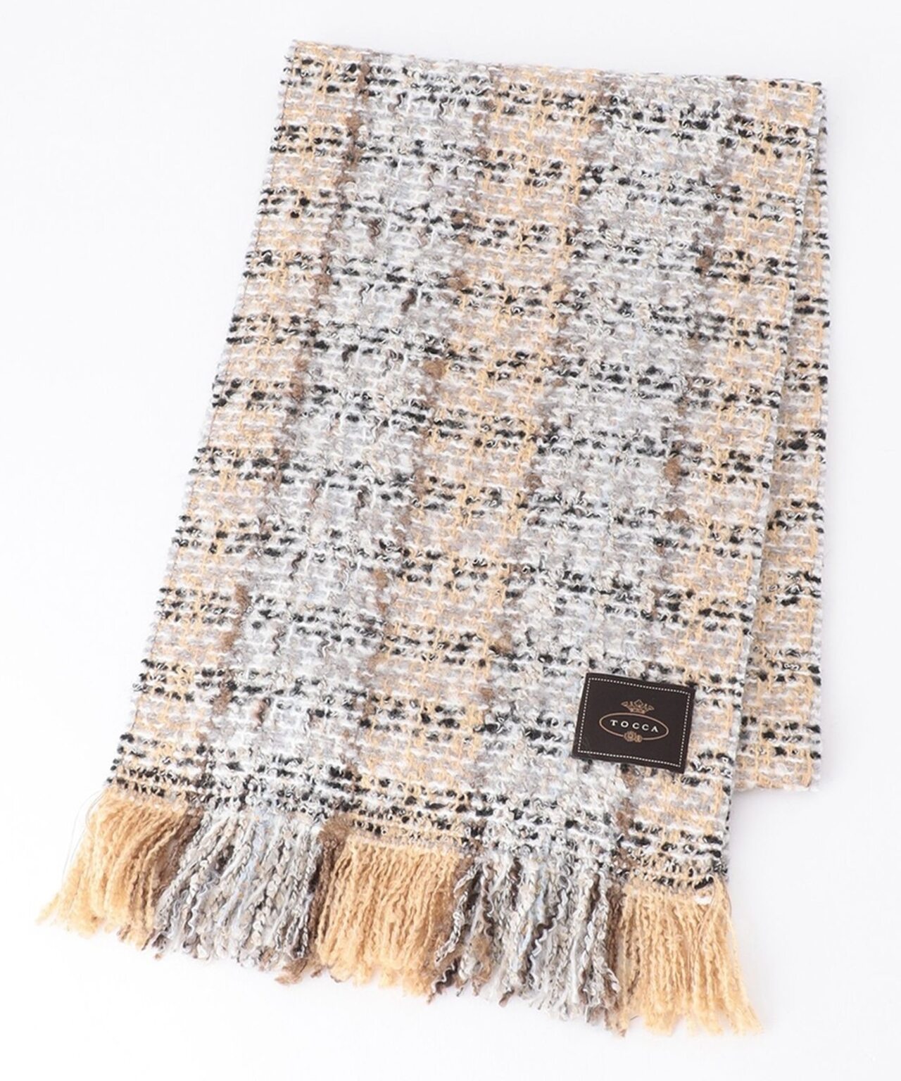 ふわっとした起毛感と、表情豊かなニュアンスカラーMIXの色味で顔まわりがパッと華やぐストール。冬の重たいコートスタイリングにひと巻きすれば、あたたかく上品に彩ってくれます。ストールストールTOCCA¥12,100(税込) -