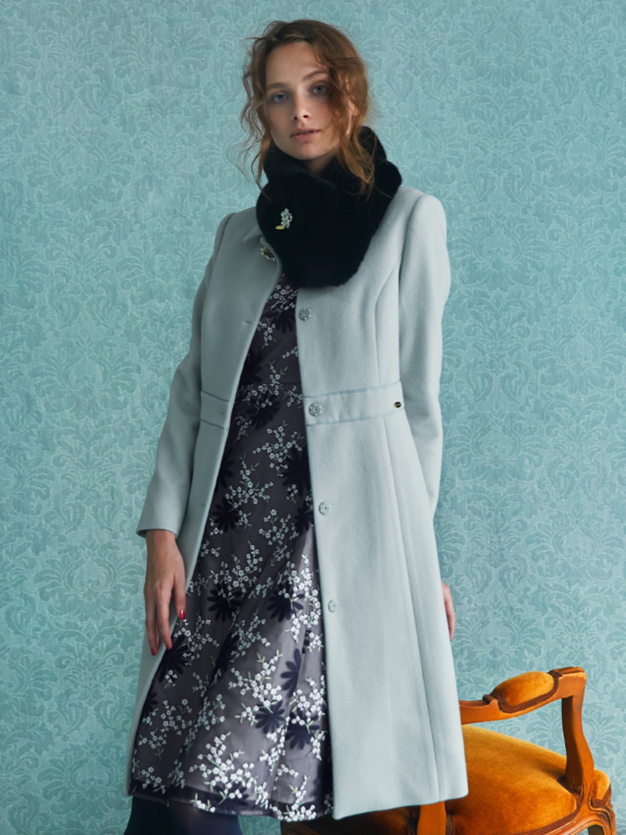 【自由区】 エコファー ノーカラーコート ¥36,300(税込)